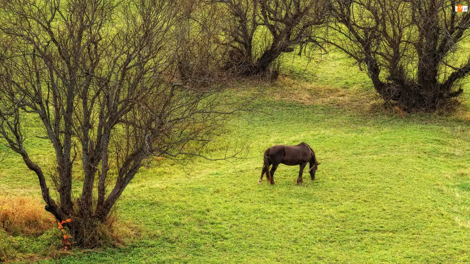 Koń, Drzewa, Łąka