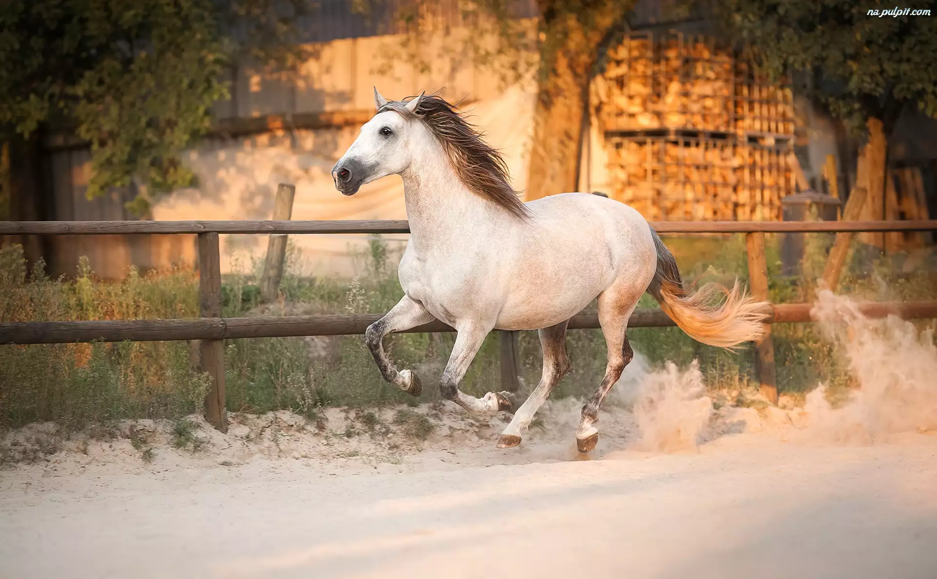 Tagi: Galop Koń Ogrodzenie Drzewa