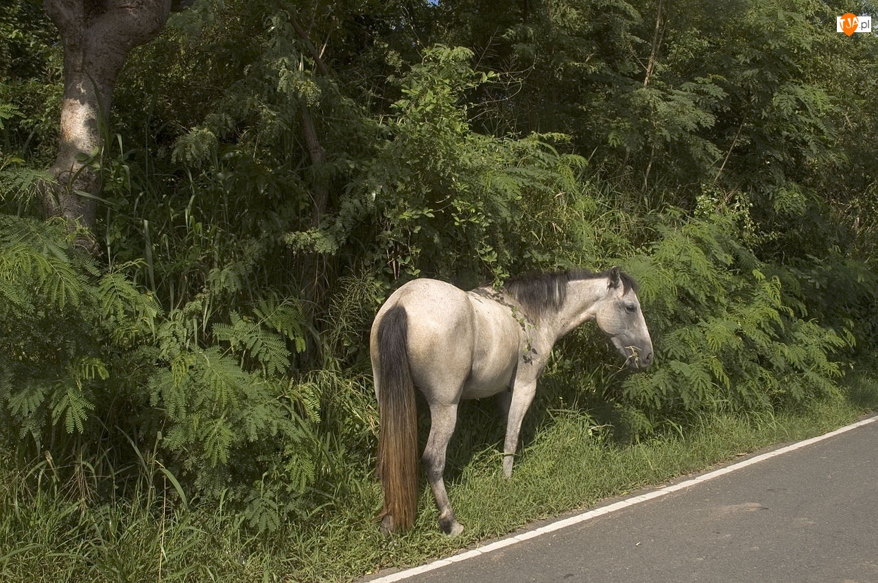 Konik, Roślinność, Przy, Drodze