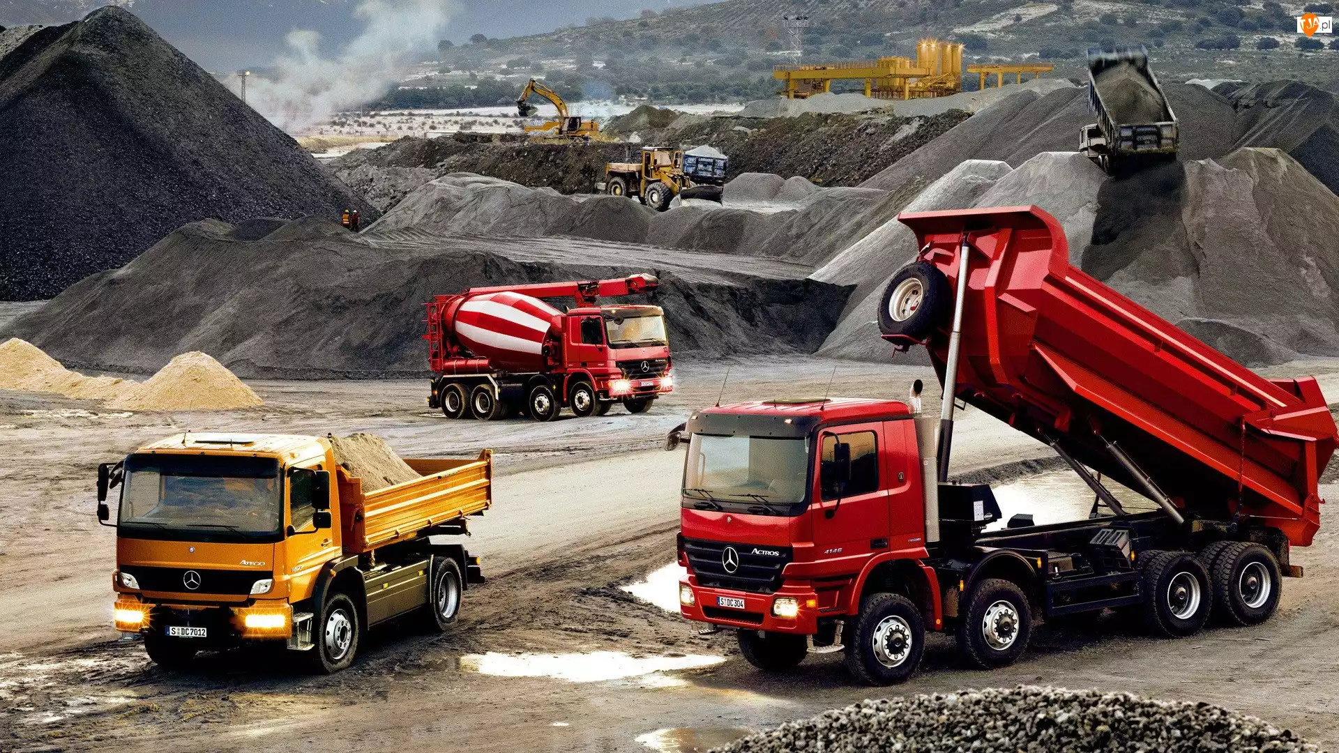 Koparka, Wywrotka, Mercedesa, Ciężarówki, Kamieniołom, Gruszka Betoniarka, Spychacz
