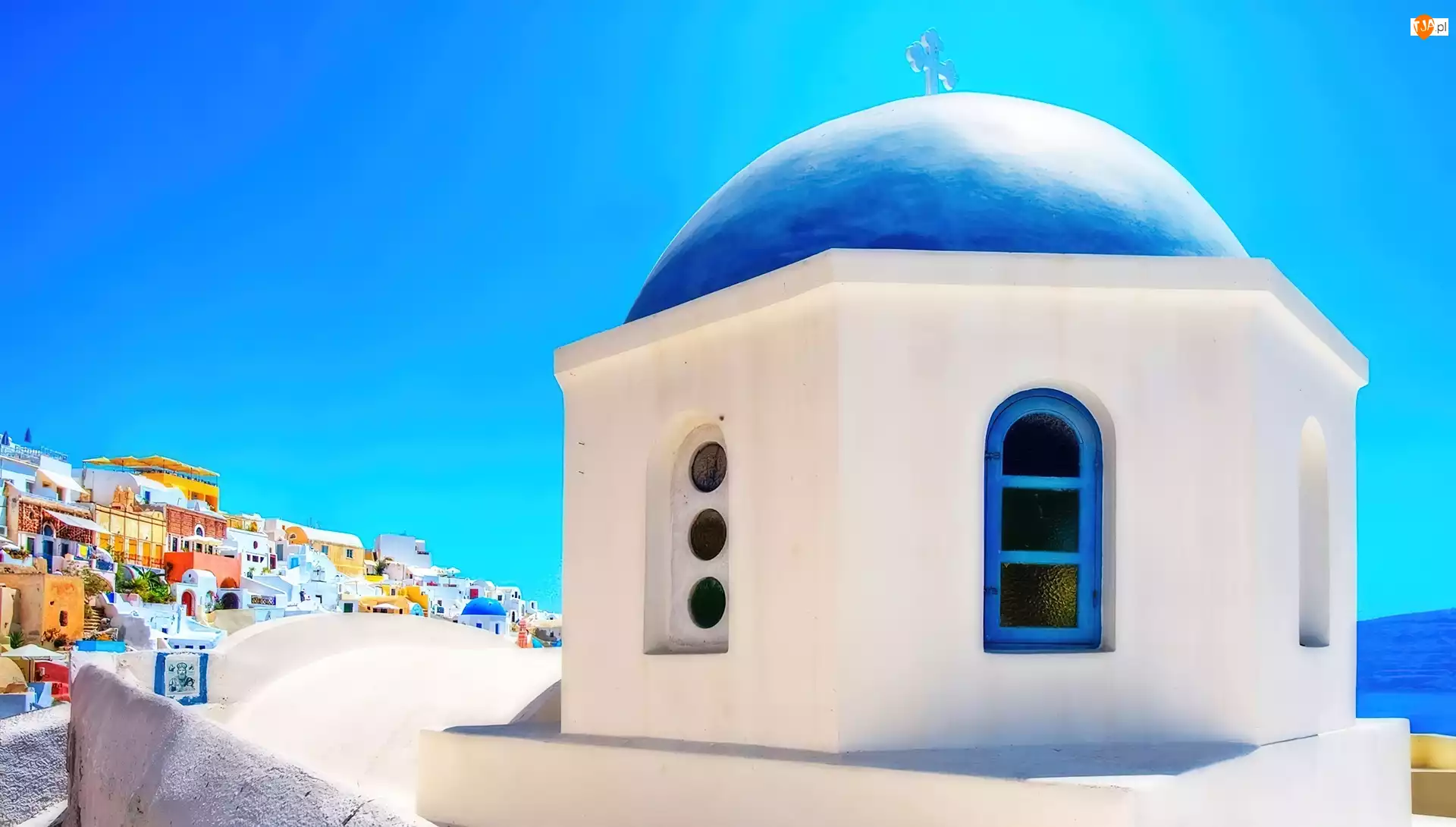 Grecja, Kopuła, Santorini, Cerkiew, Niebieska