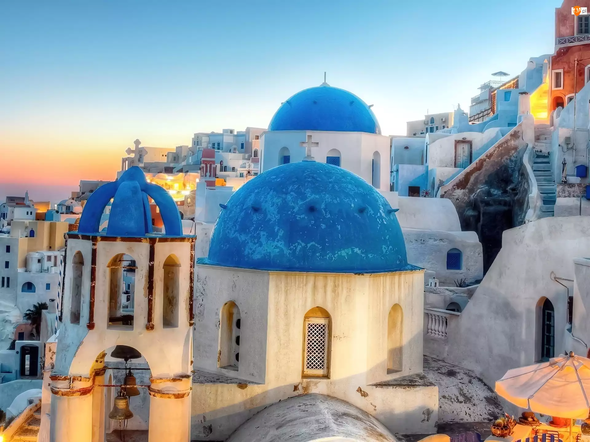 Grecja, Kopuły, Santorini, Cerkiew, Niebieskie