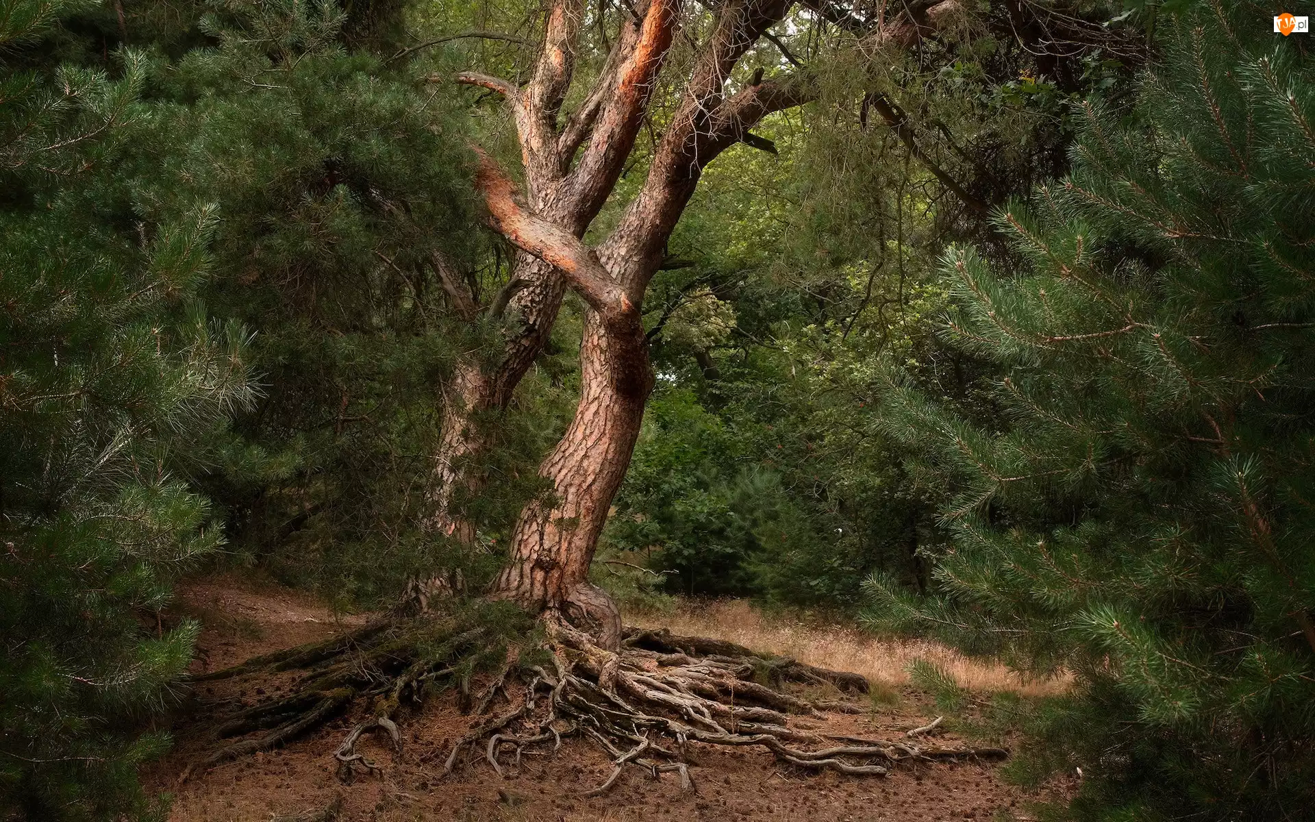 Korzenie, Las, Drzewa, Wystające