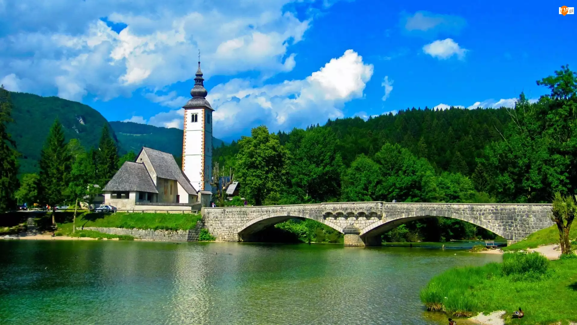 Kościółek św. Jana, Słowenia, Jezioro Bohinj, Most, Gmina Bohinj