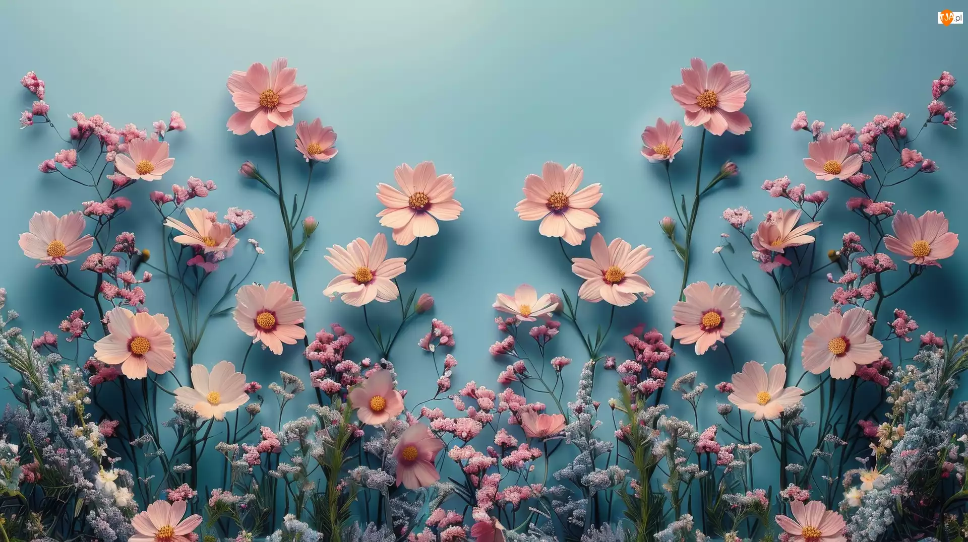 Kosmea, Tło, Kwiaty, Różowe, Niebieskie