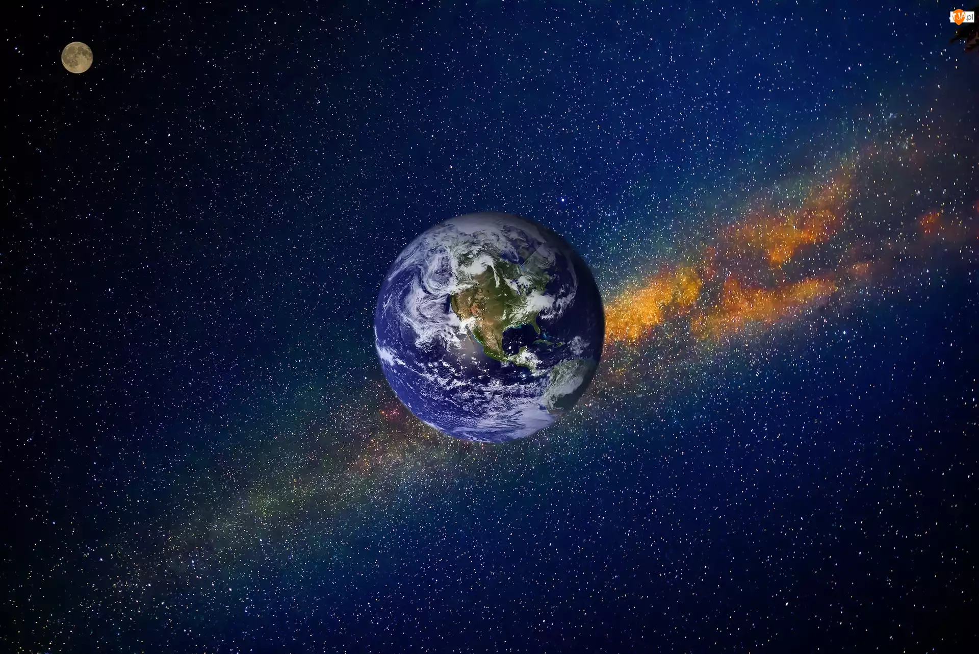 Ziemia, Księżyc, Planety, Kosmos, Gwiazdy