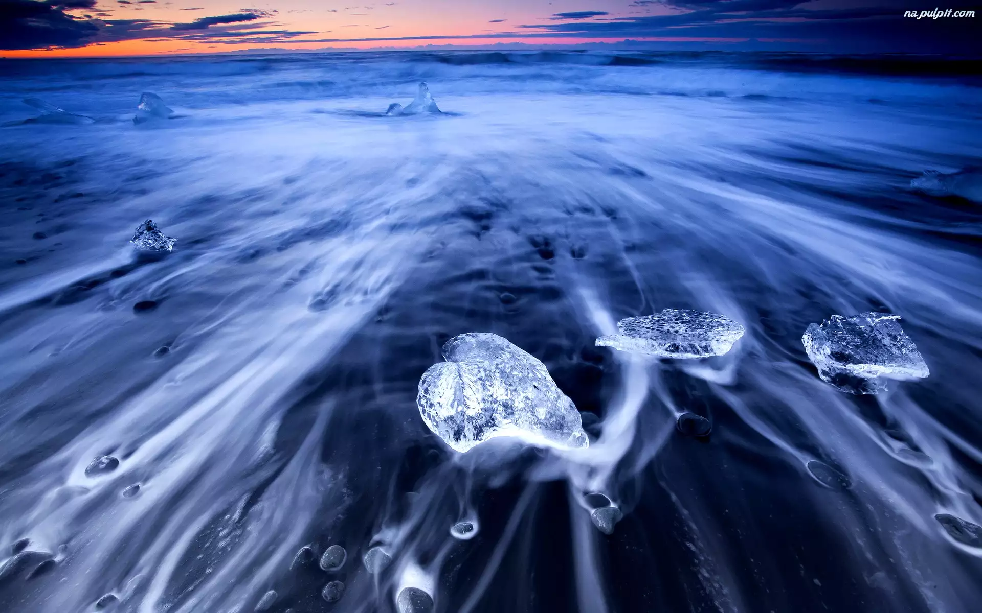 Kostki, Zachód, Morze, Słońca, Lodowe