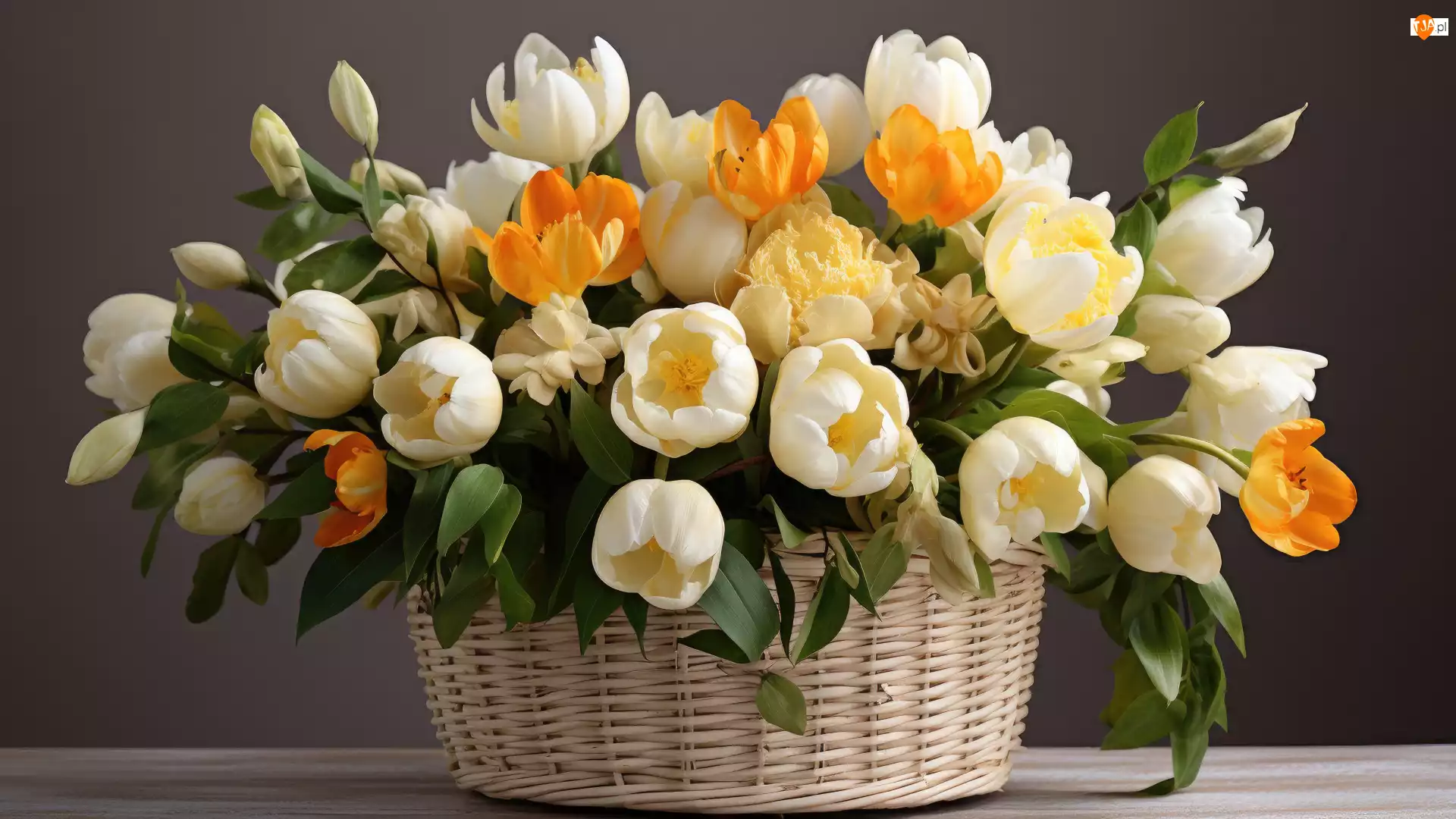 Koszyk, Kwiaty, Tulipany, Kolorowe