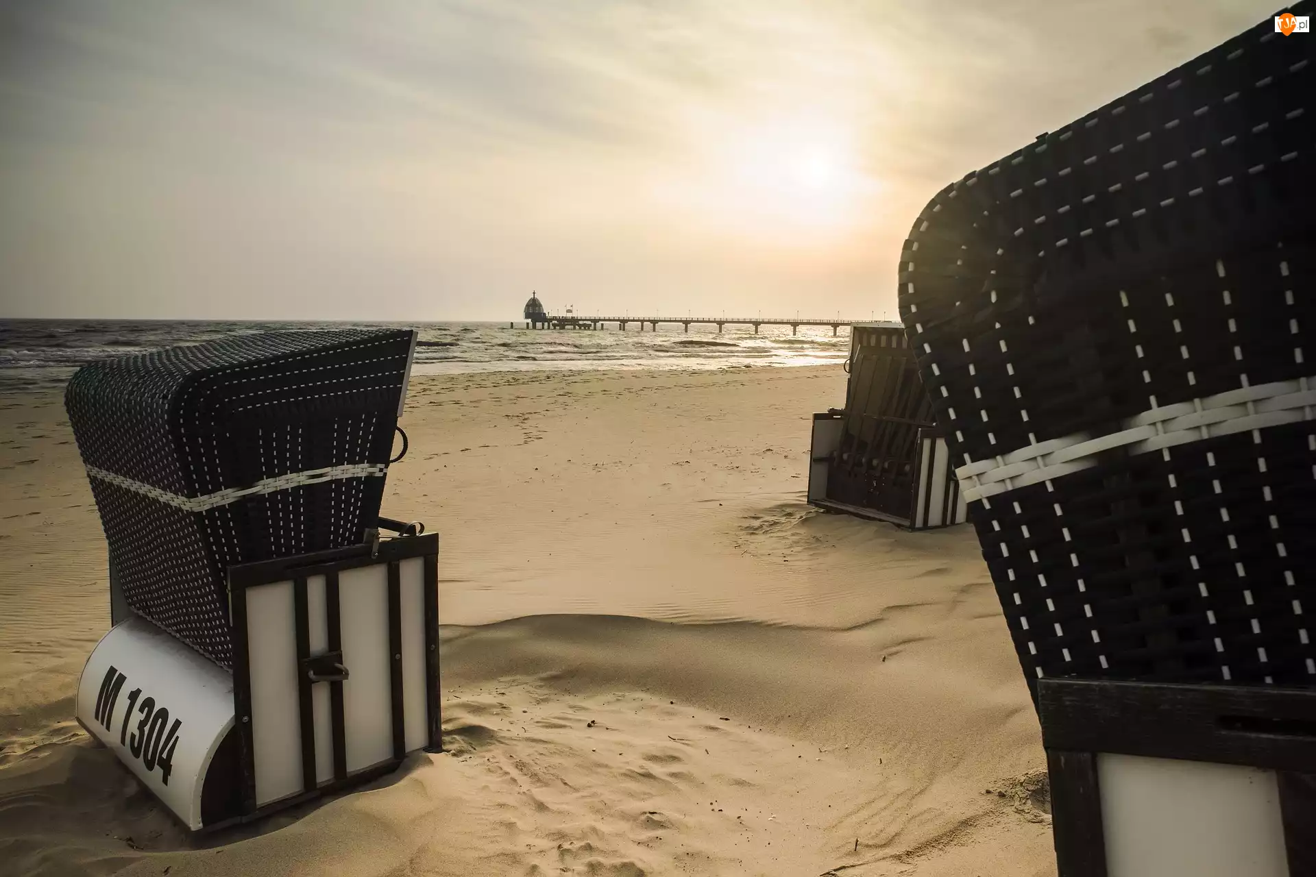 Morze, Plaża, Kosze plażowe, Niemcy, Molo, Zinnowitz