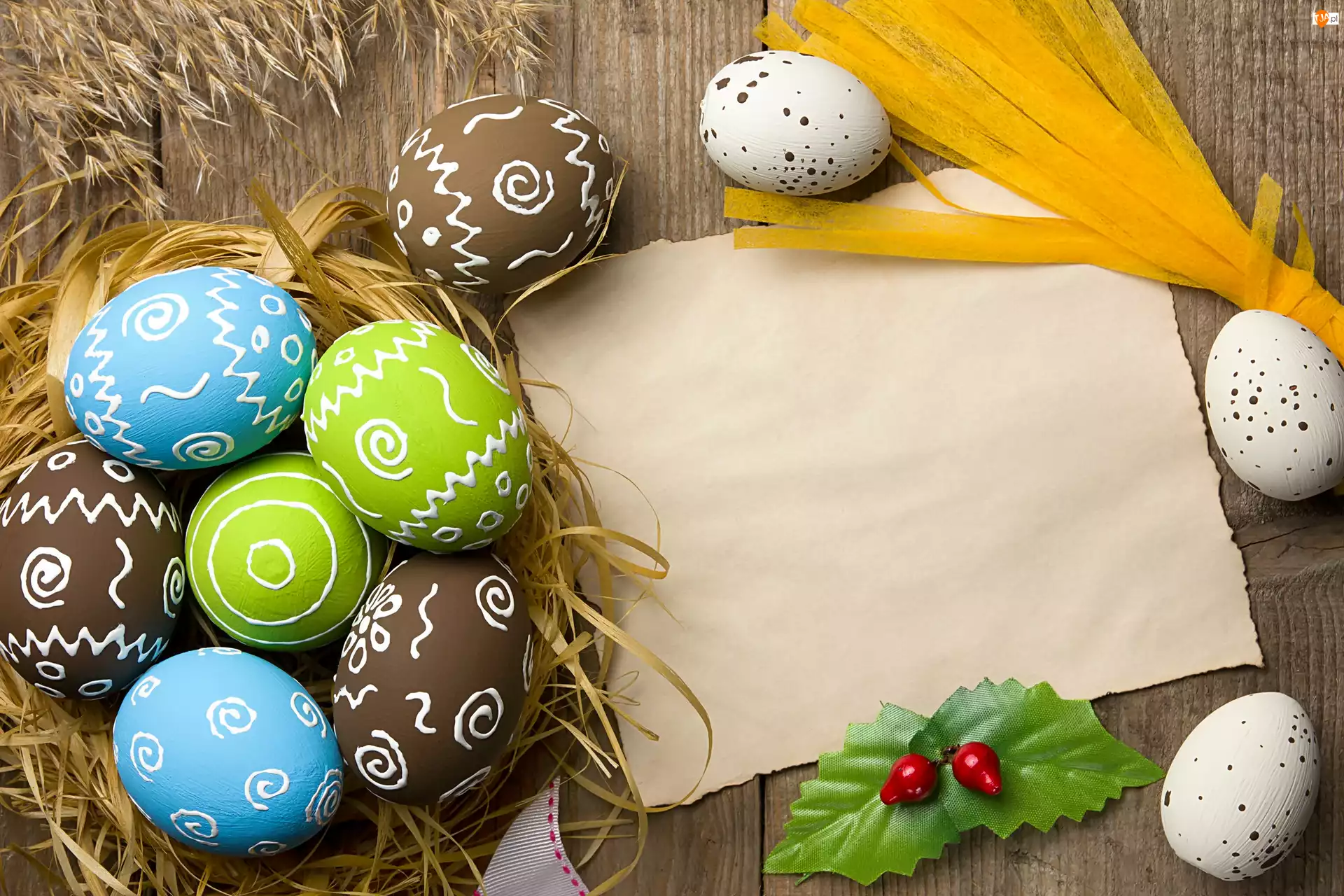 Wielkanoc, Pisanki, Gniazdo, Kartka