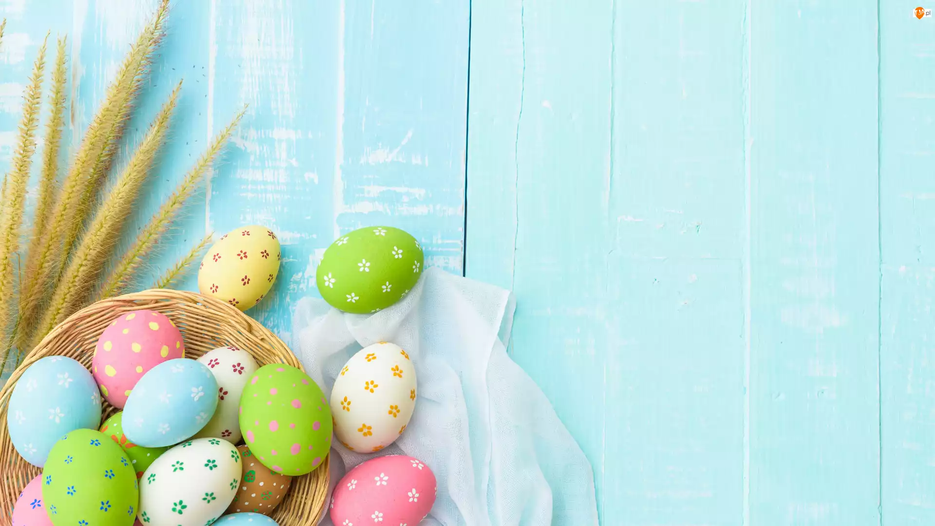 Koszyczek, Deski, Pisanki, Wielkanoc, Trawa