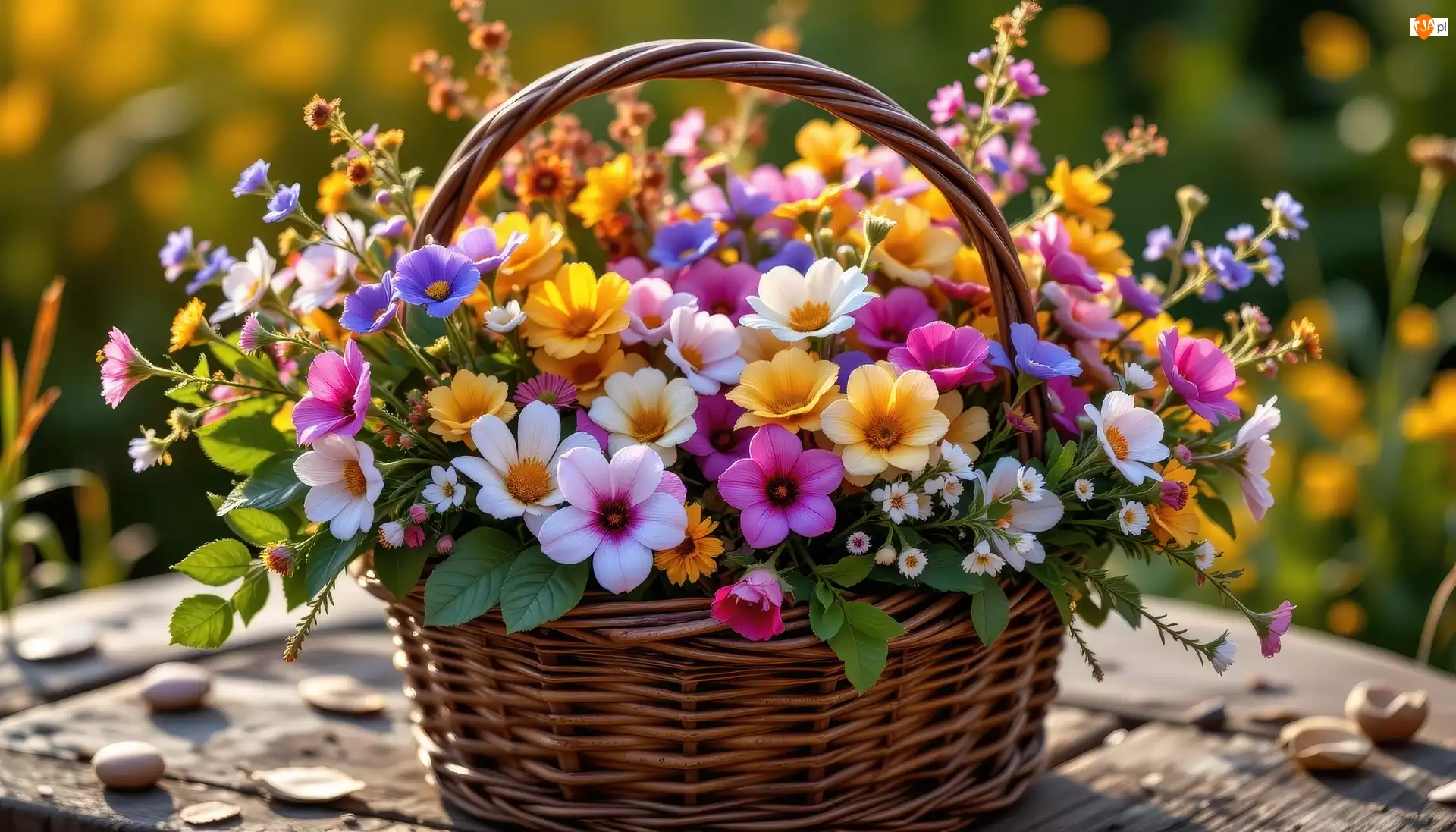 Koszyk, Kolorowe, Kwiaty, Wiklinowy