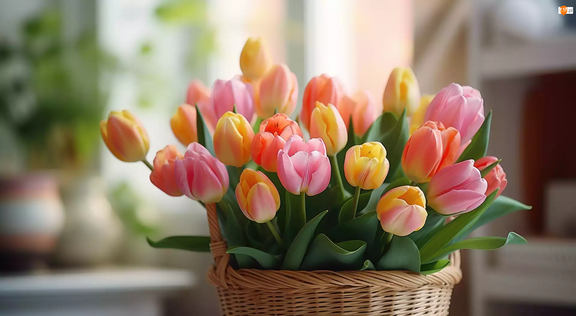 Koszyk, Kompozycja, Kolorowe, Tulipany