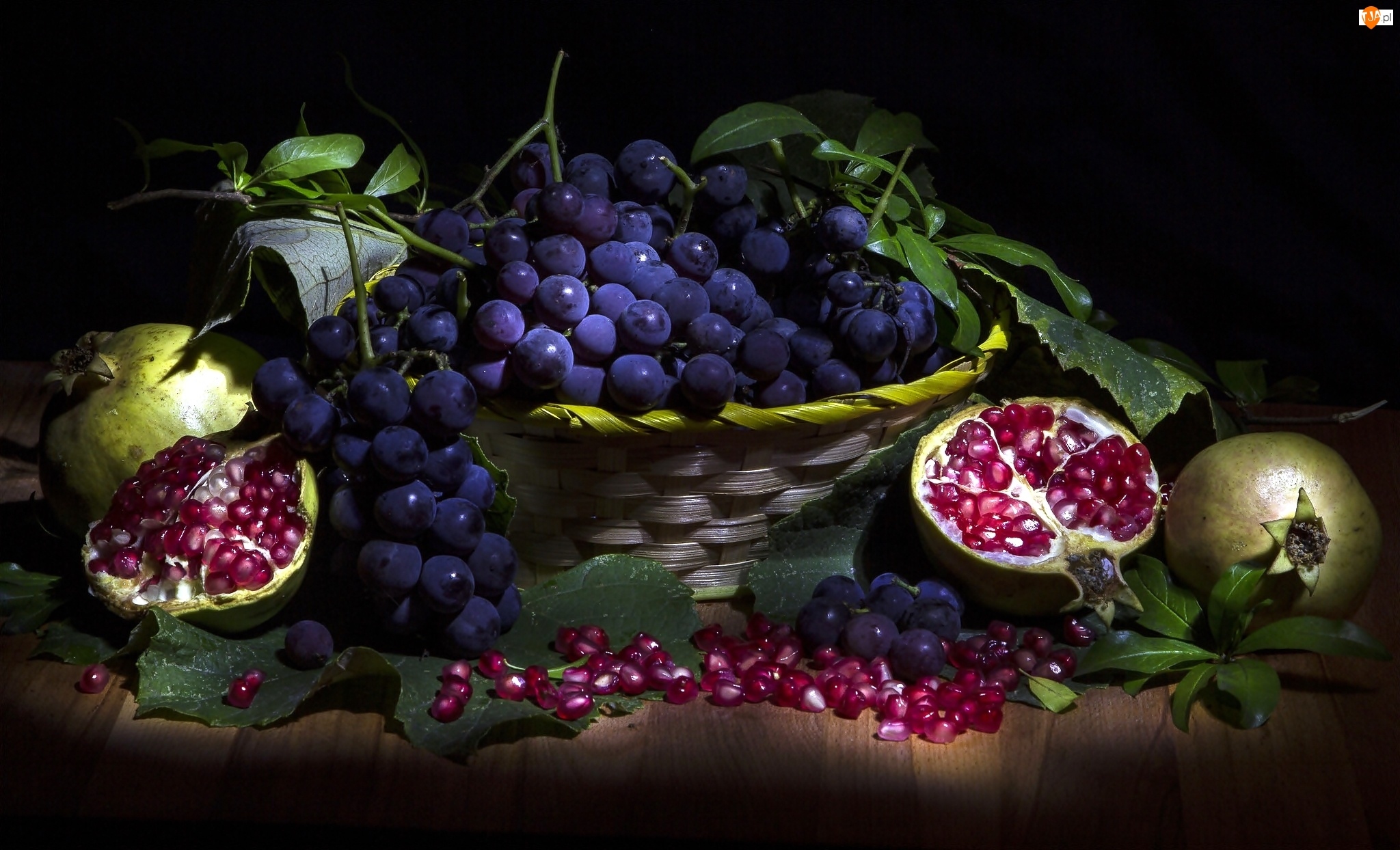 Koszyk, Kompozycja, Winogrona, Granaty