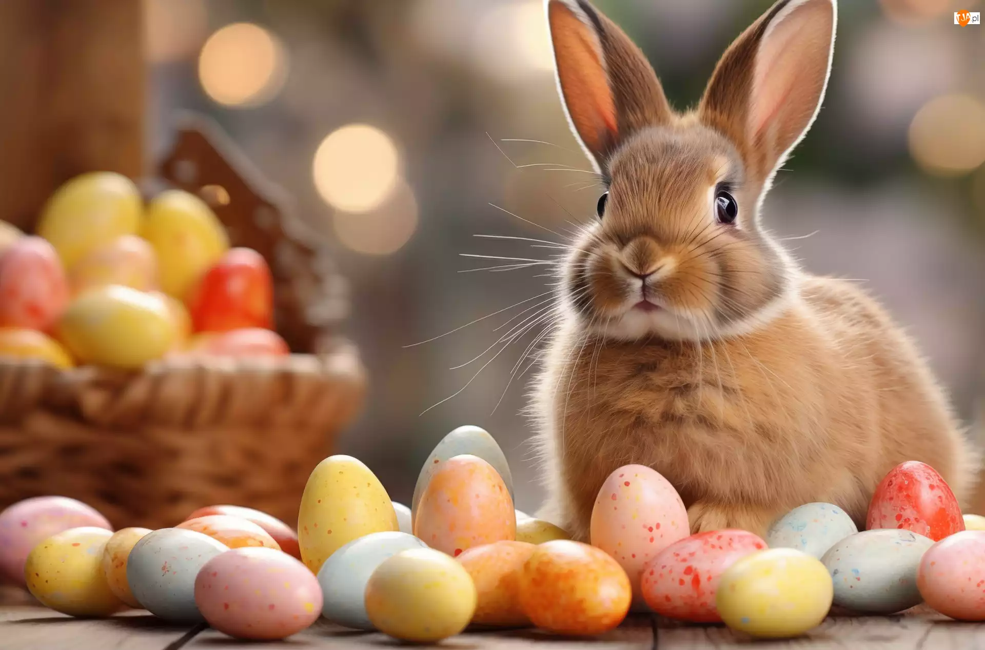 Koszyk, Królik, Kolorowe, Pisanki