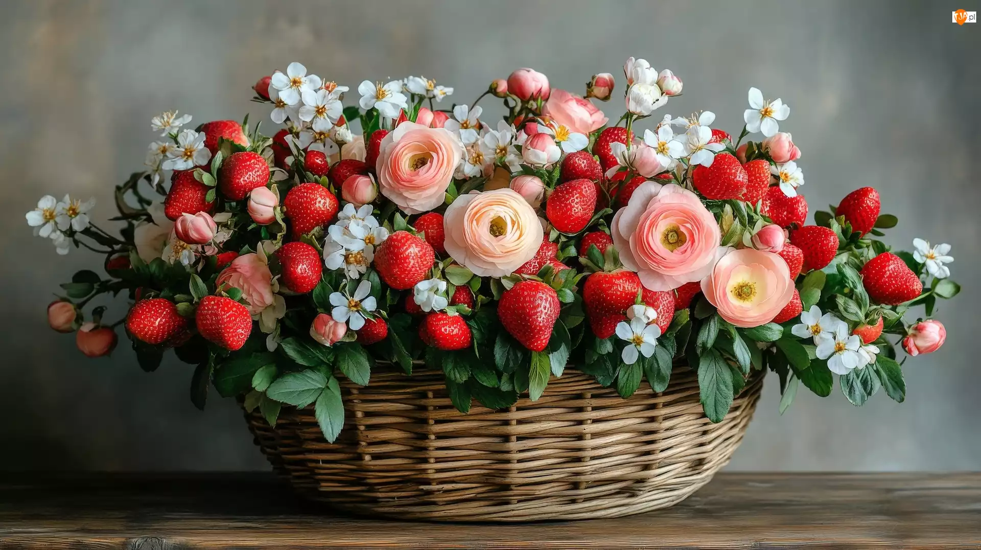 Koszyk, Kwiaty, Truskawki