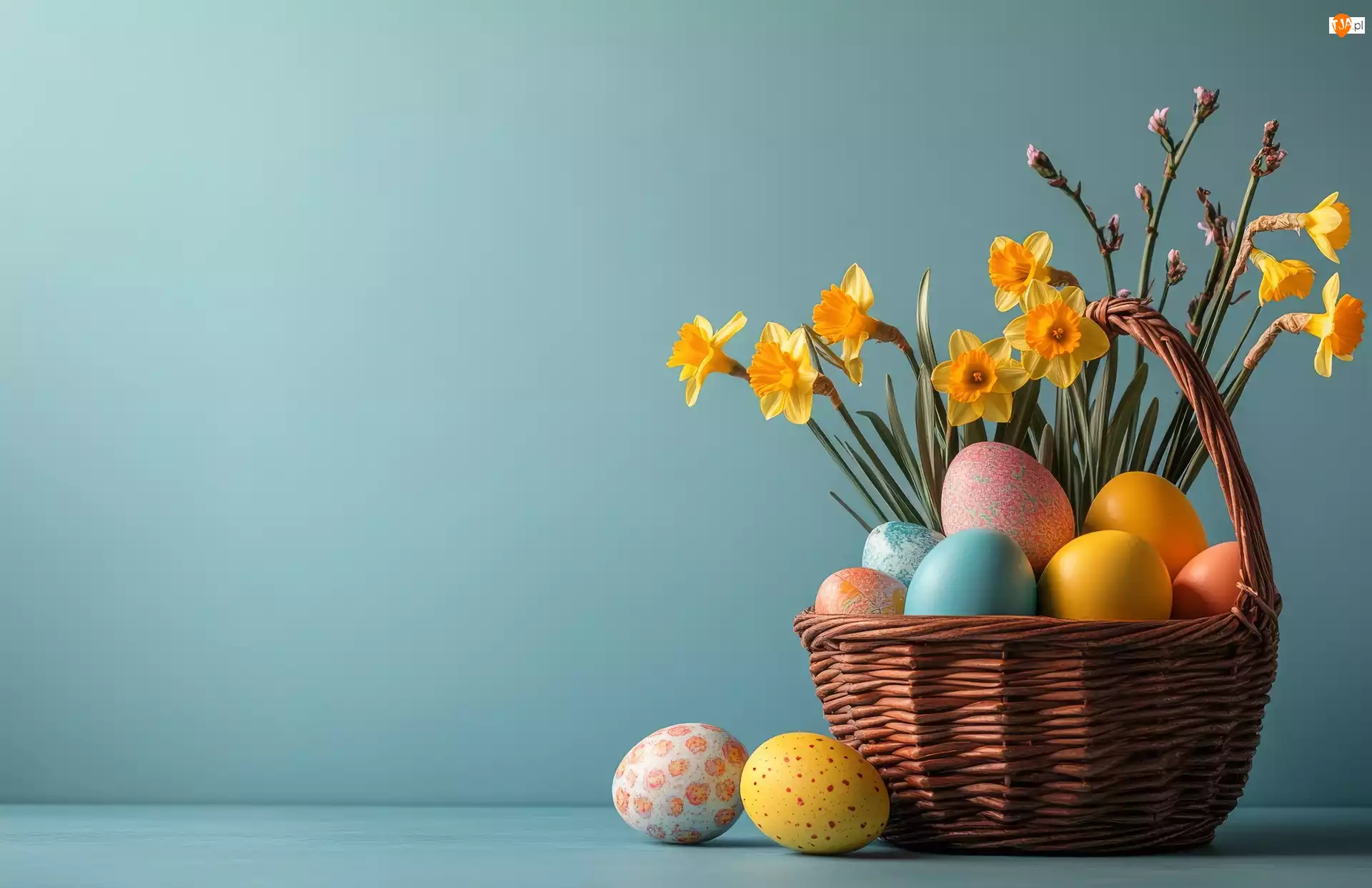 Narcyzy żonkile, Wielkanoc, Koszyk, Pisanki