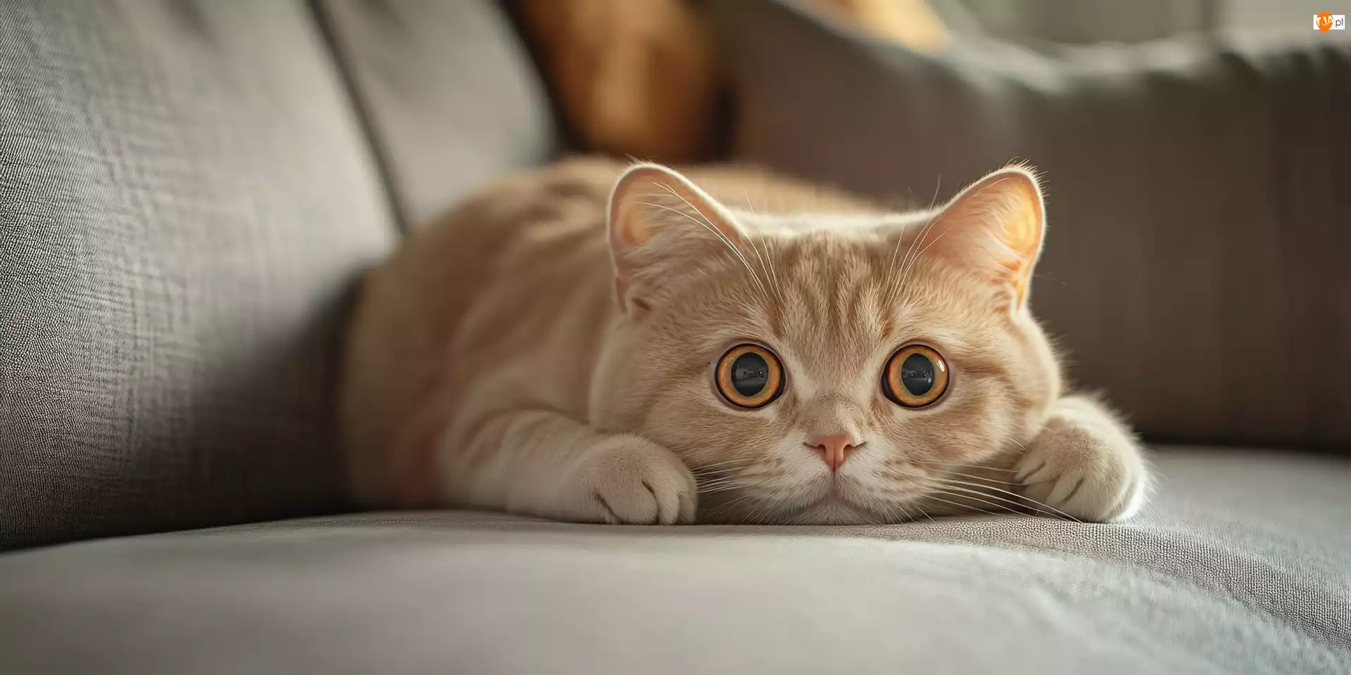 Kot, Grafika, Rudy, Leżący, Kanapa