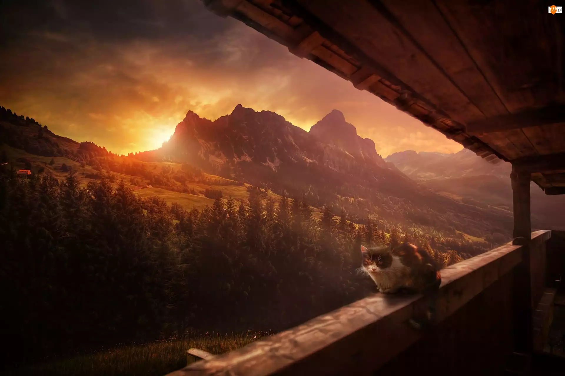 Góra Grosser Myuten, Balustrada, Szwajcaria, Kot, Alpy, Zachód słońca