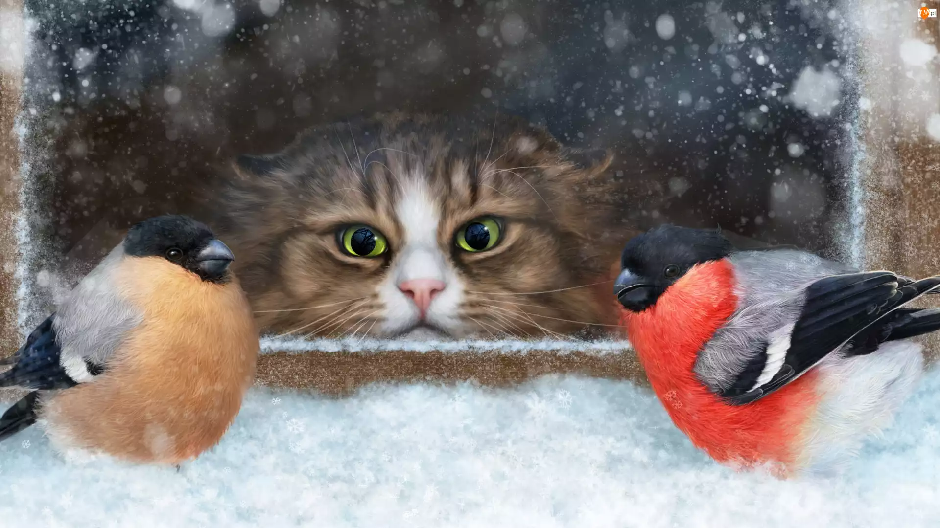 Parapet, Ptaki, Zima, Gile, Okno, Kot