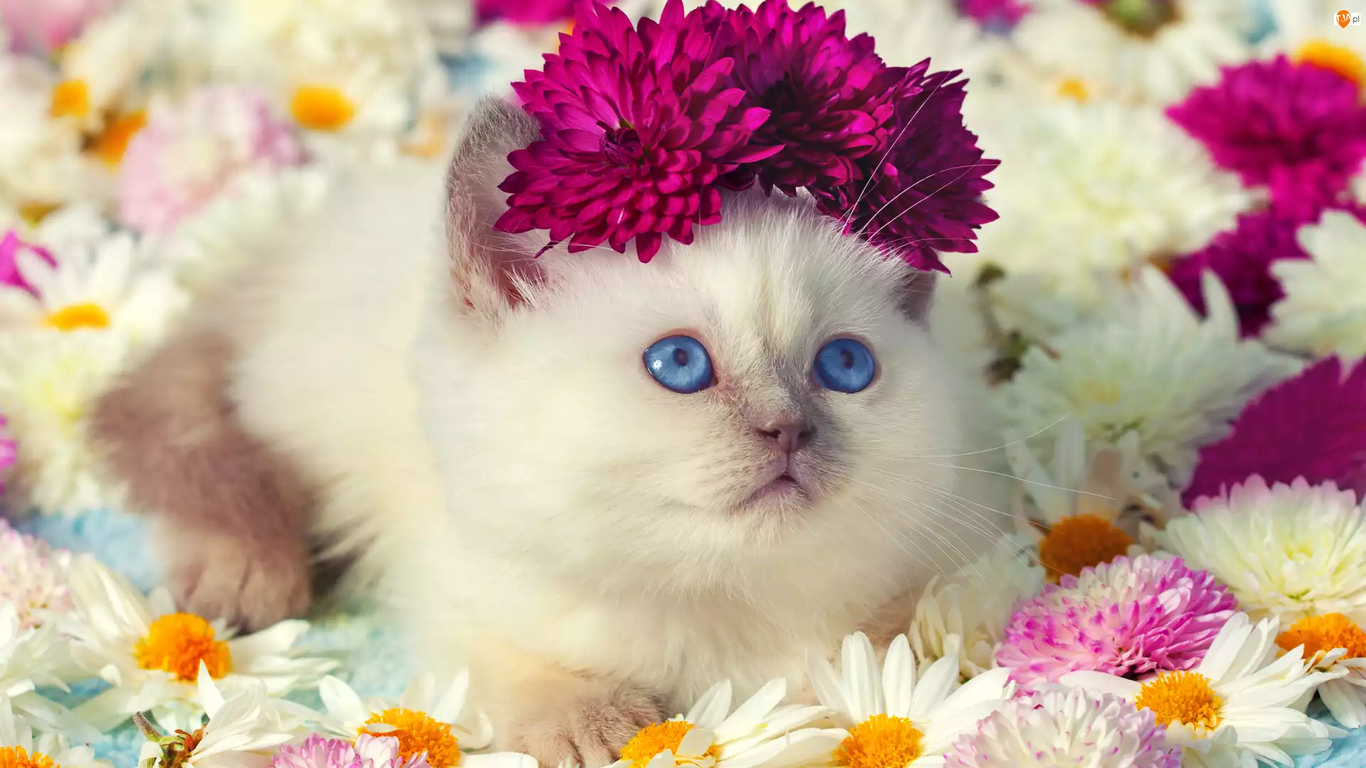 Ragdoll, Oczy, Kot, Kwiaty, Niebieskie