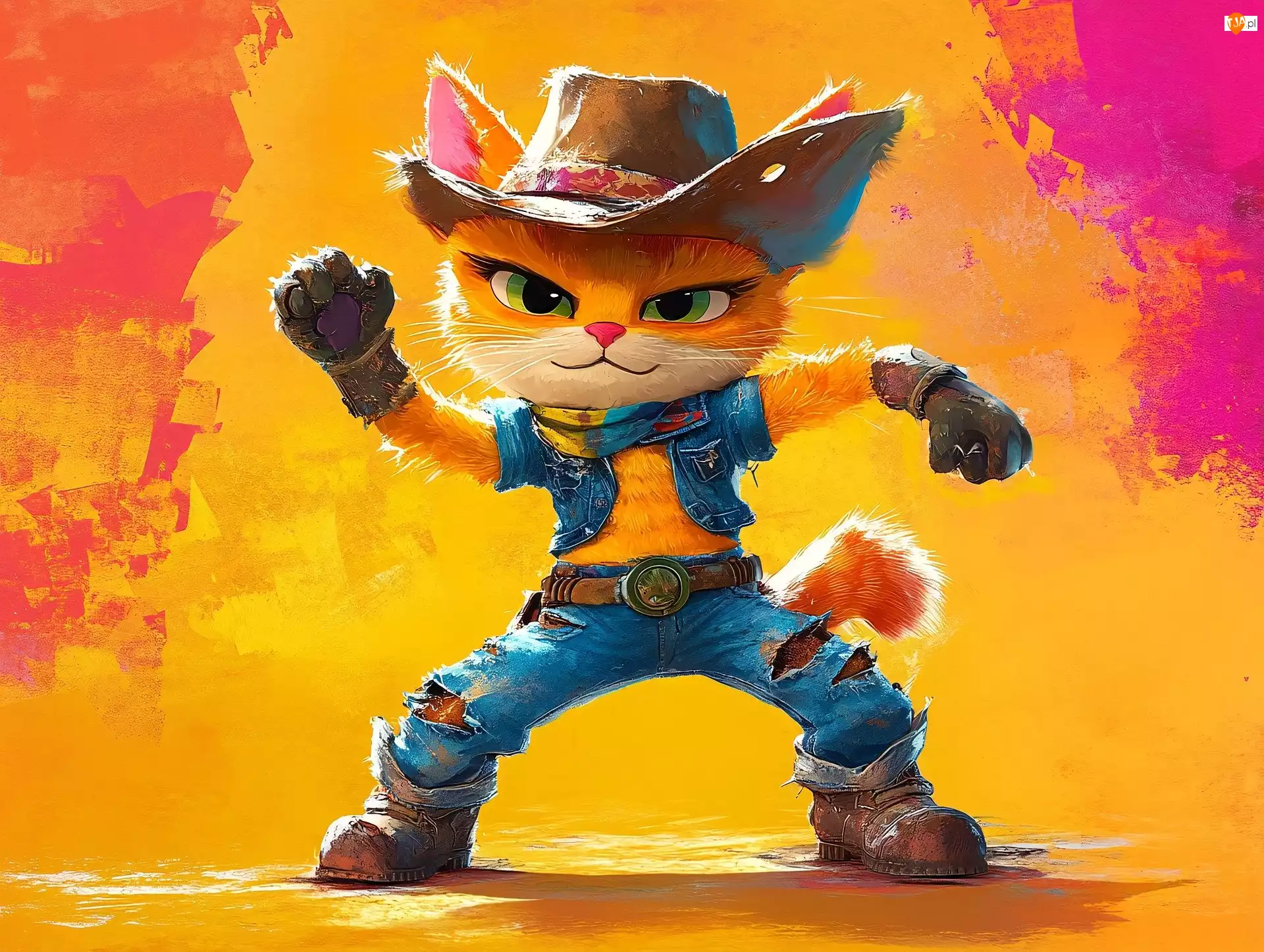 Kot w stroju kowboja w grafice