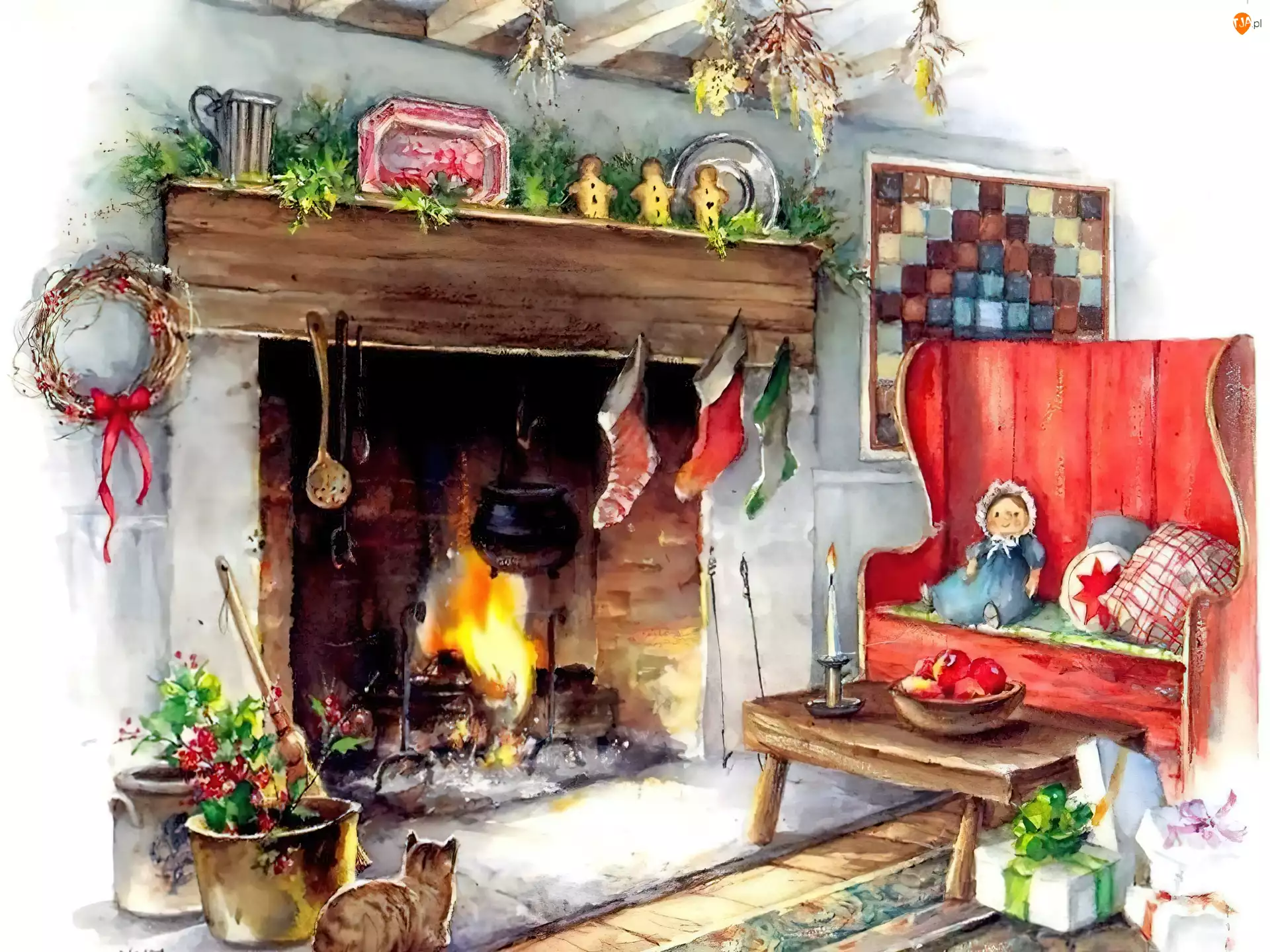 kotek, Boże Narodzenie, kominek
