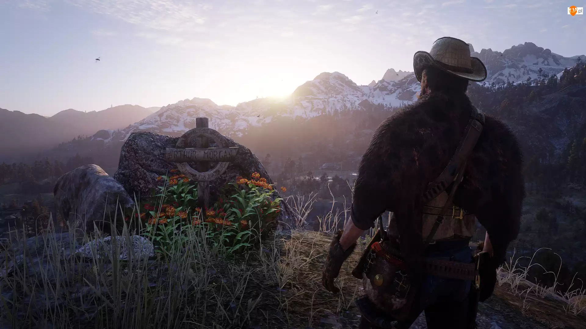 Kowboj przy grobie z gry Red Dead Redemption 2