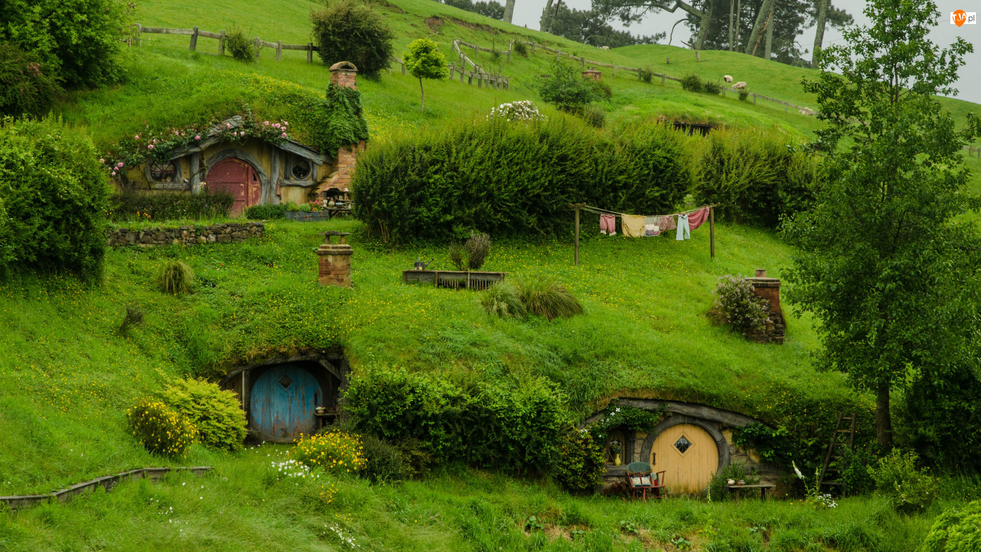 Atrakcja turystyczna, Wzgórze, Nowa Zelandia, Plan filmowy Hobbiton, Miejscowość Matamata, Hobbit, Domy