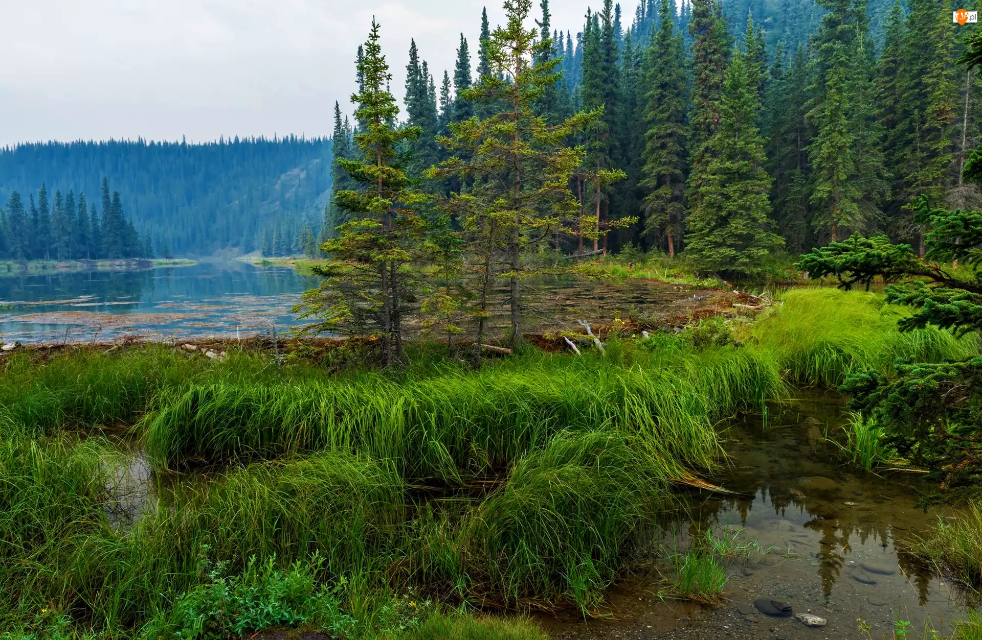 Alaska, Stany Zjednoczone, Jezioro Horseshoe, Trawy, Park Narodowy Denali, Las