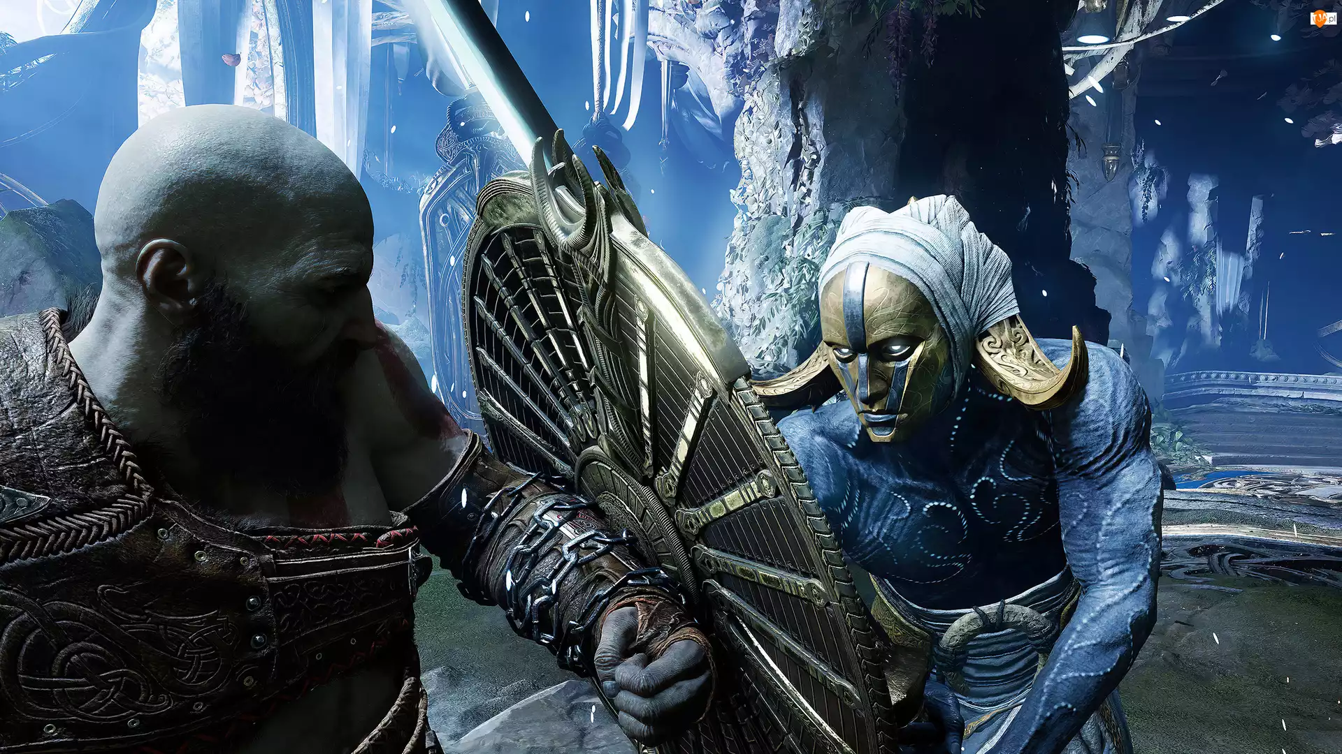 God of War Ragnarok, Kratos, Walka, Gry, Broń, Tarcza, Wiking