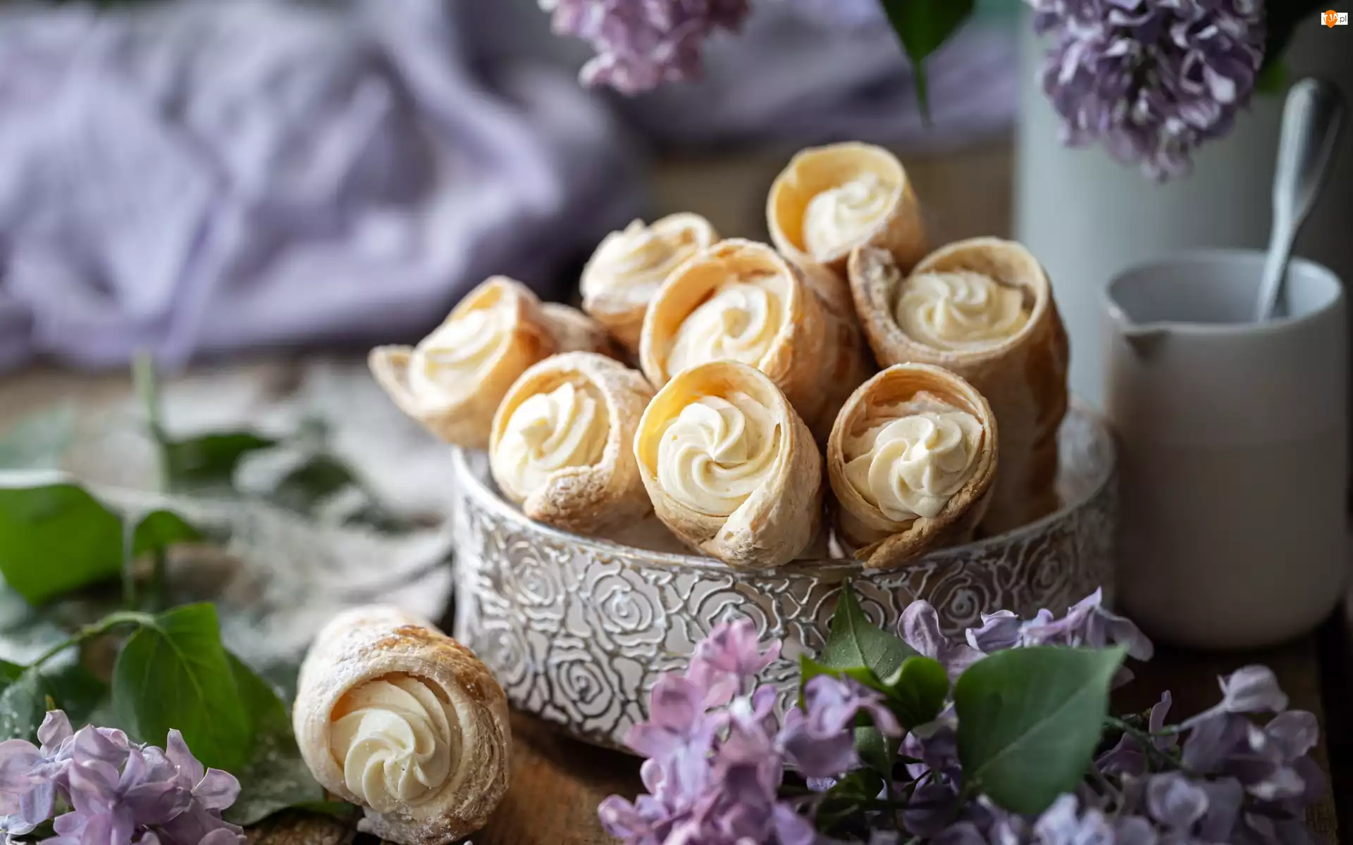 Krem, Kwiaty, Rurki, Ciastka, Bez