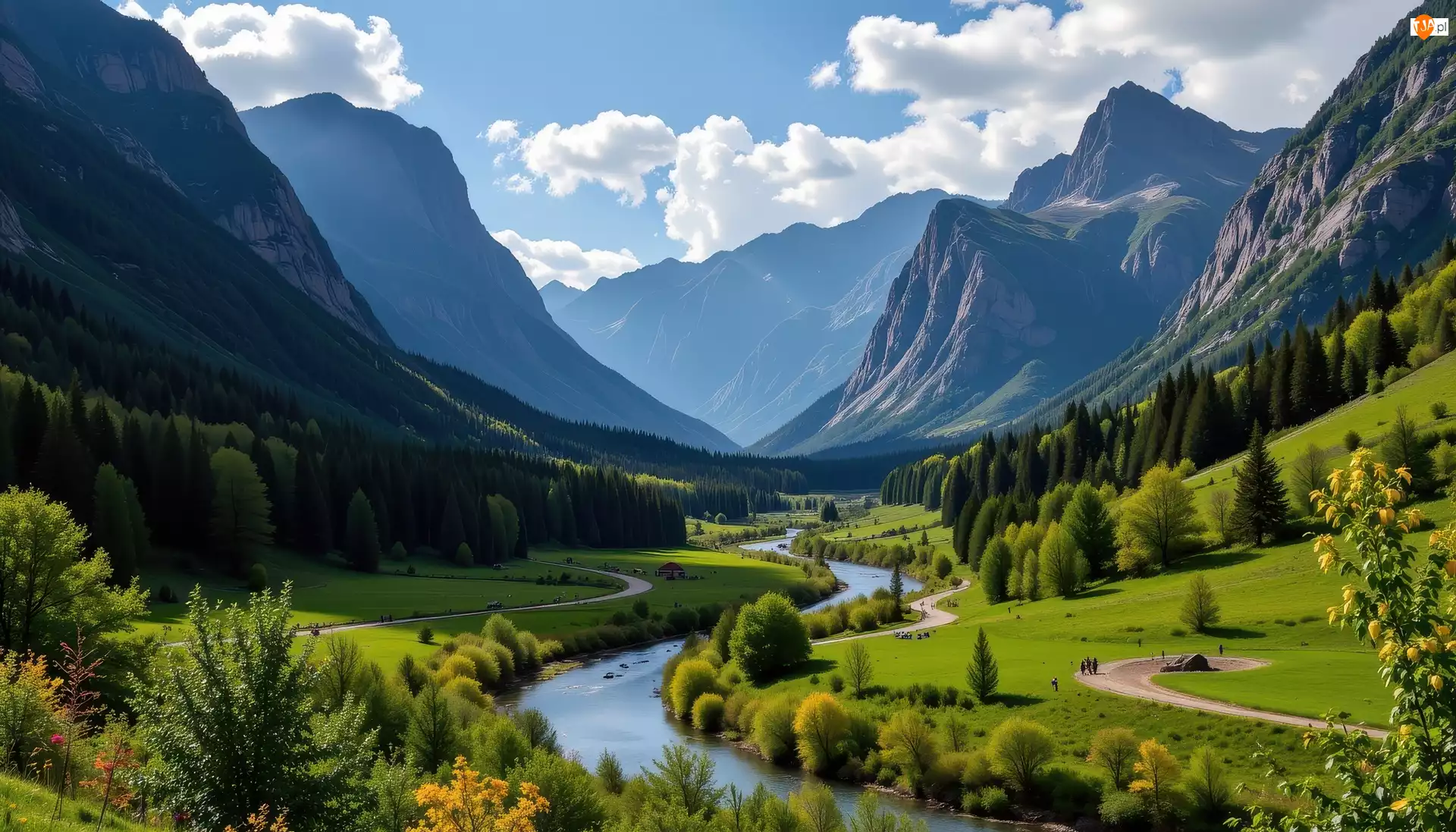Kręta, Rzeka, Grafika, Dolina, Lasy, Góry, Drzew