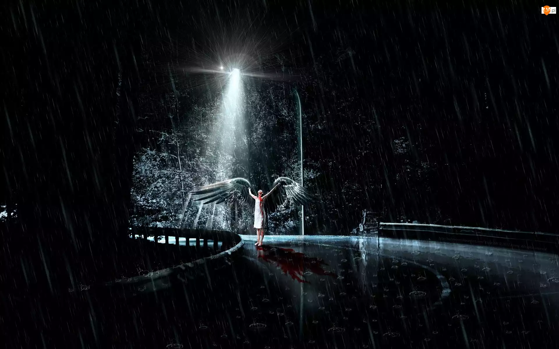 Krew, Anioł, Deszcz, Droga, Latarnia