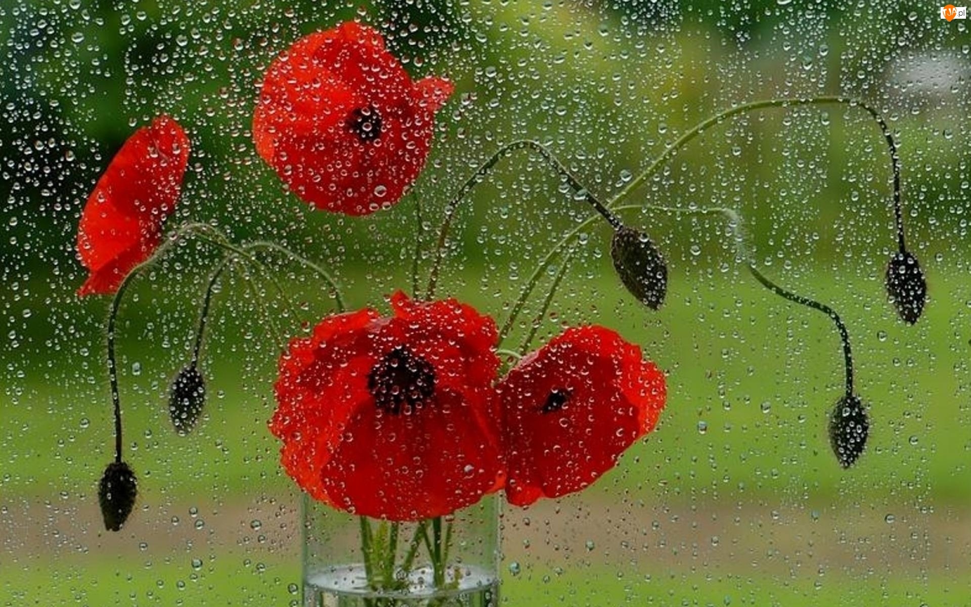 Krople, Flakon, Czerwone, Pąki, Maki, Wody