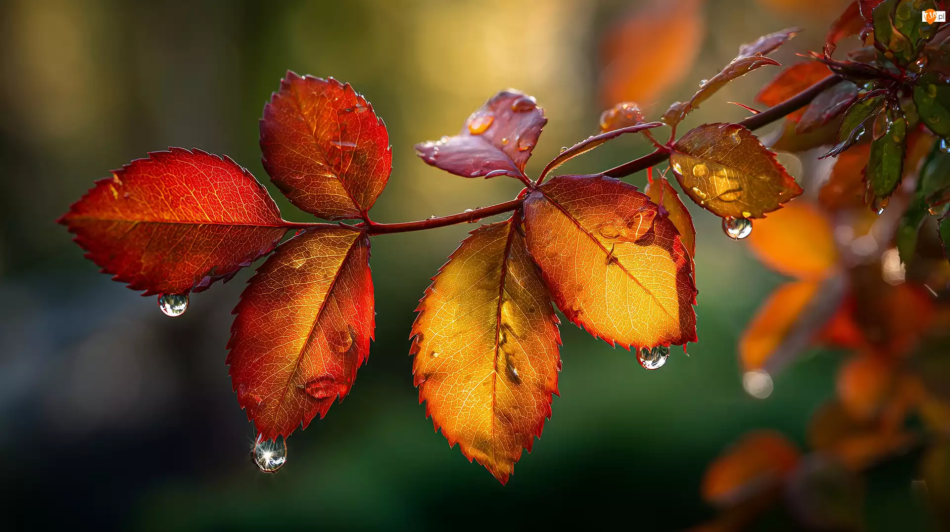 Krople, Grafika AI, Liście, Jesienne, Gałązka