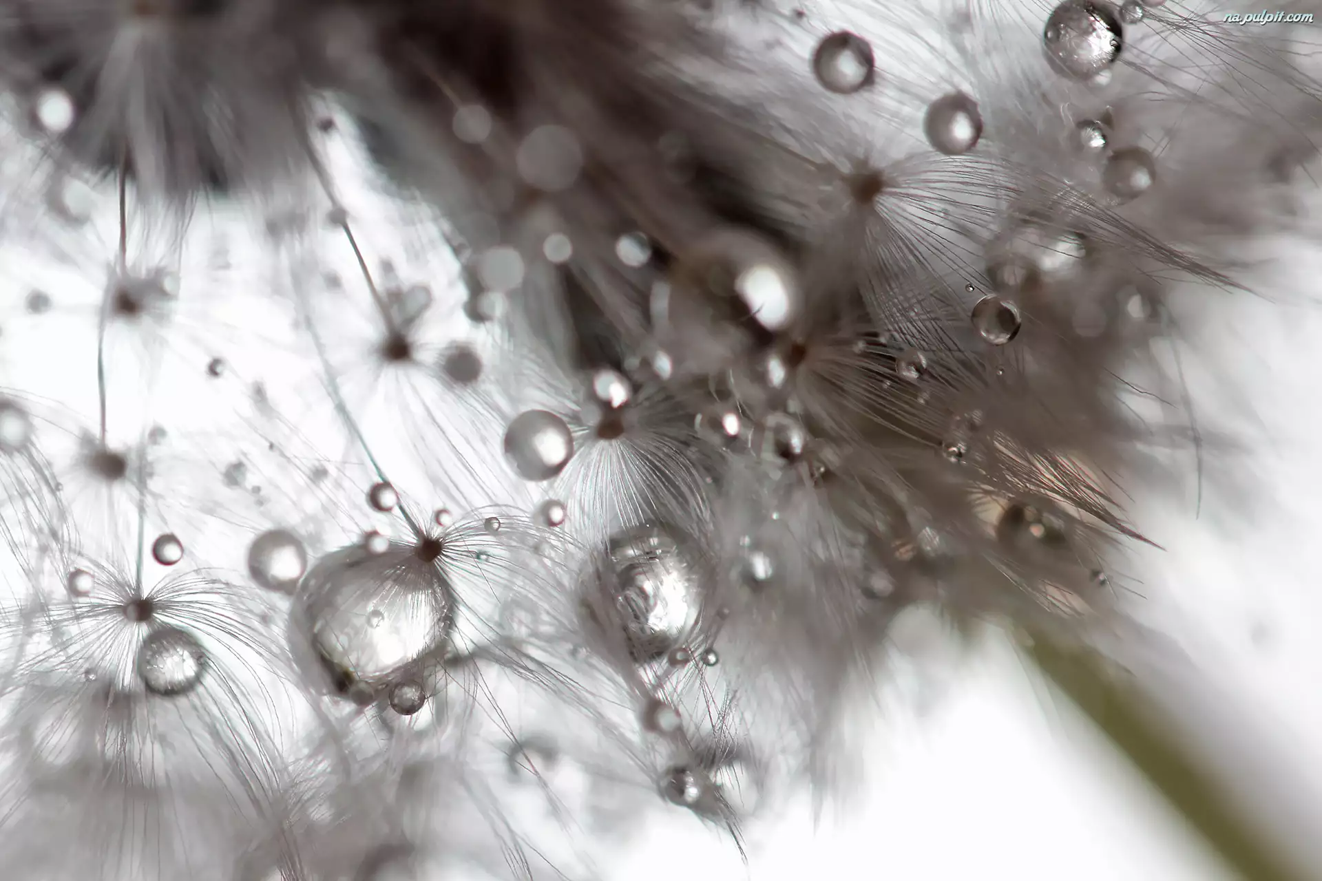 Krople wody na dmuchawcu mniszka