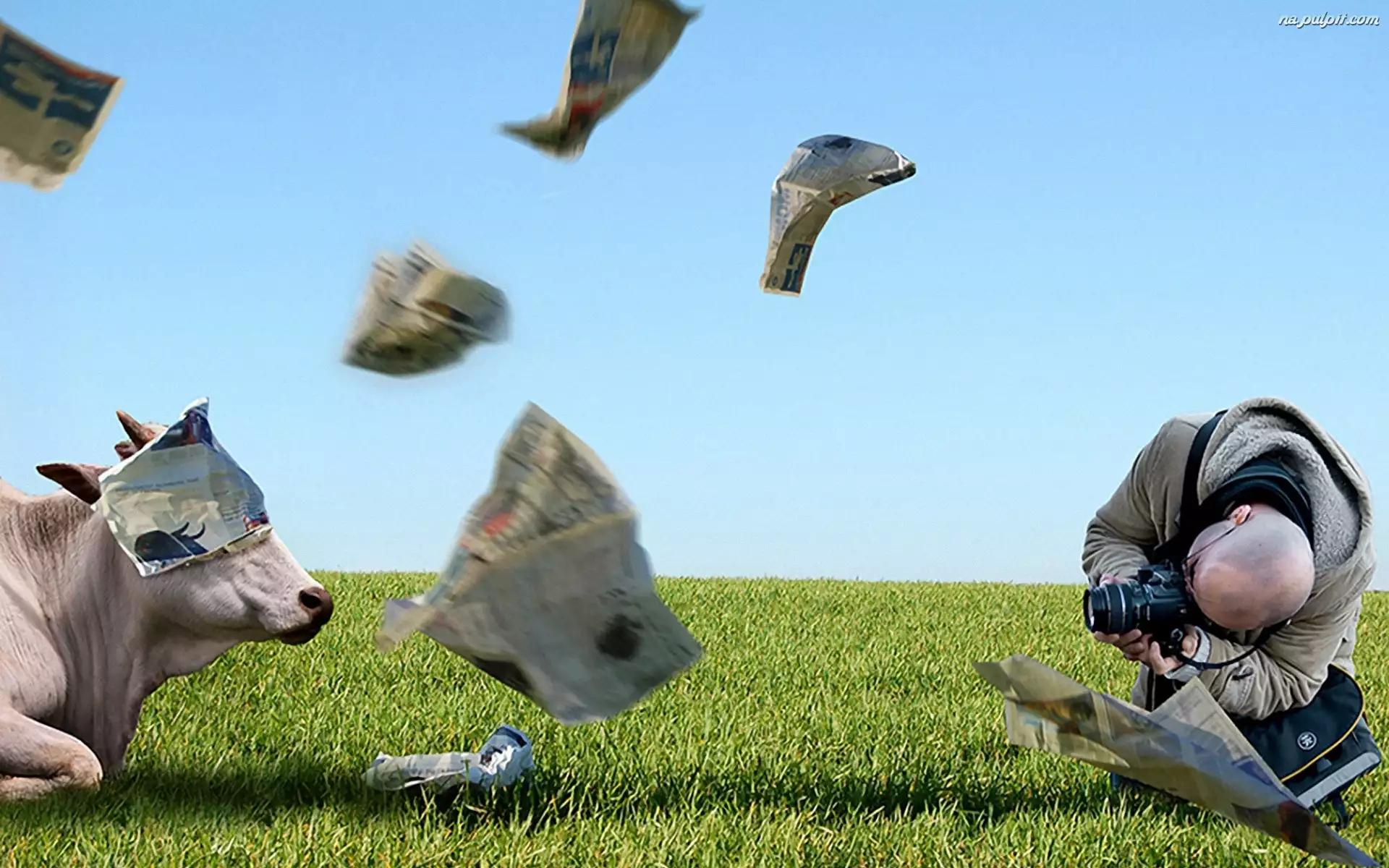 Gazety, Krowa, Fotograf, Trawa