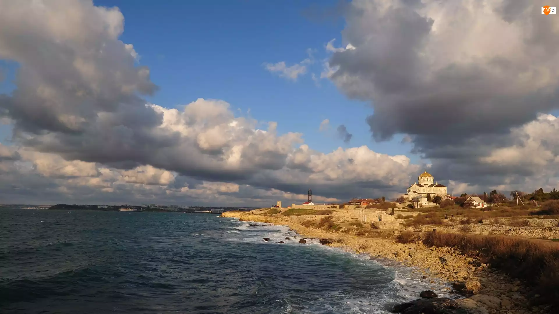 Krym, Morze, Chmury, Brzeg, Cerkiew