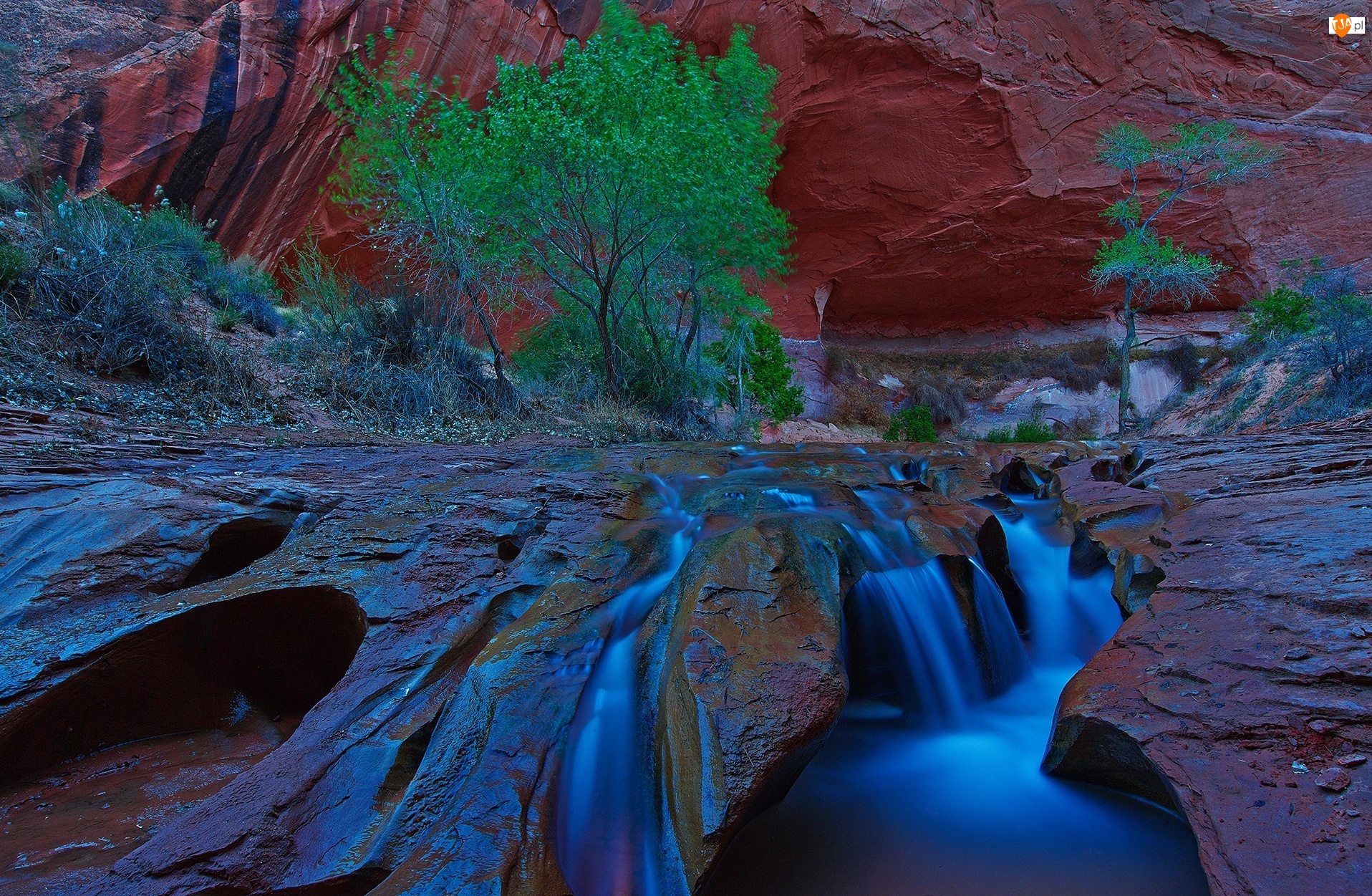Rzeczka, Krzewy, Utah, Kanion, Wodospad