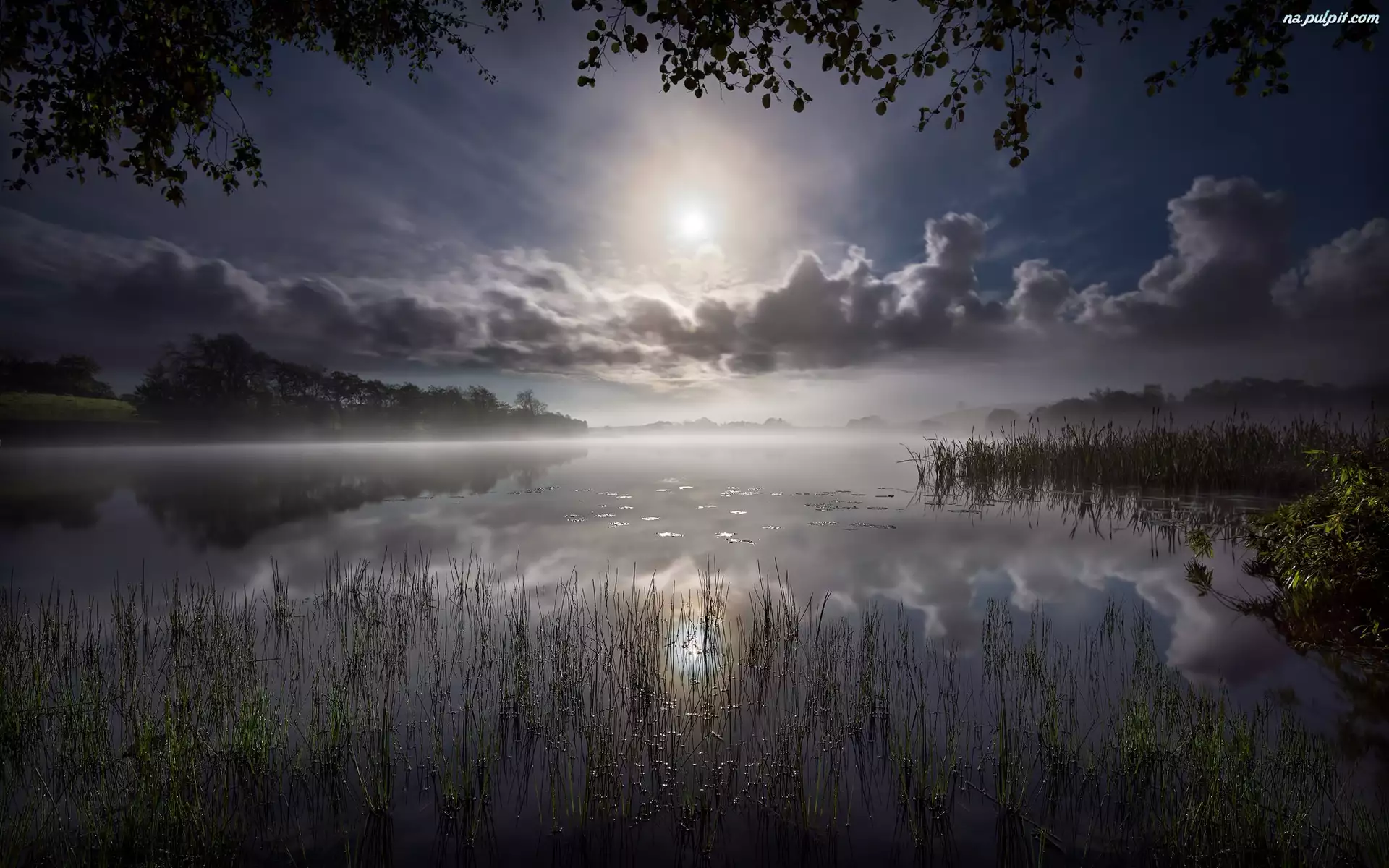Tagi: Księżyc Noc Szuwary Jezioro Chmury