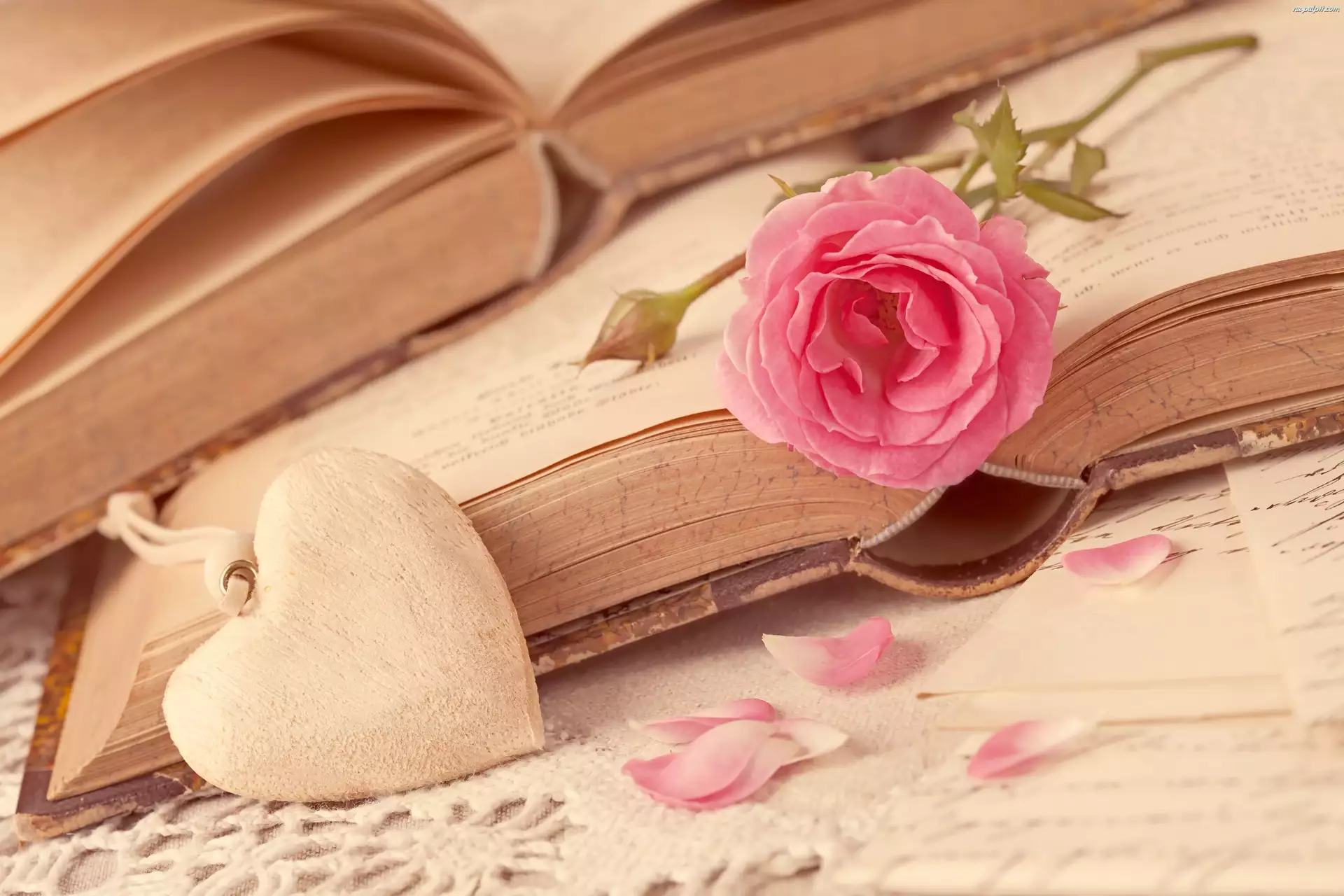 Książki, Płatki, Serce, Róża