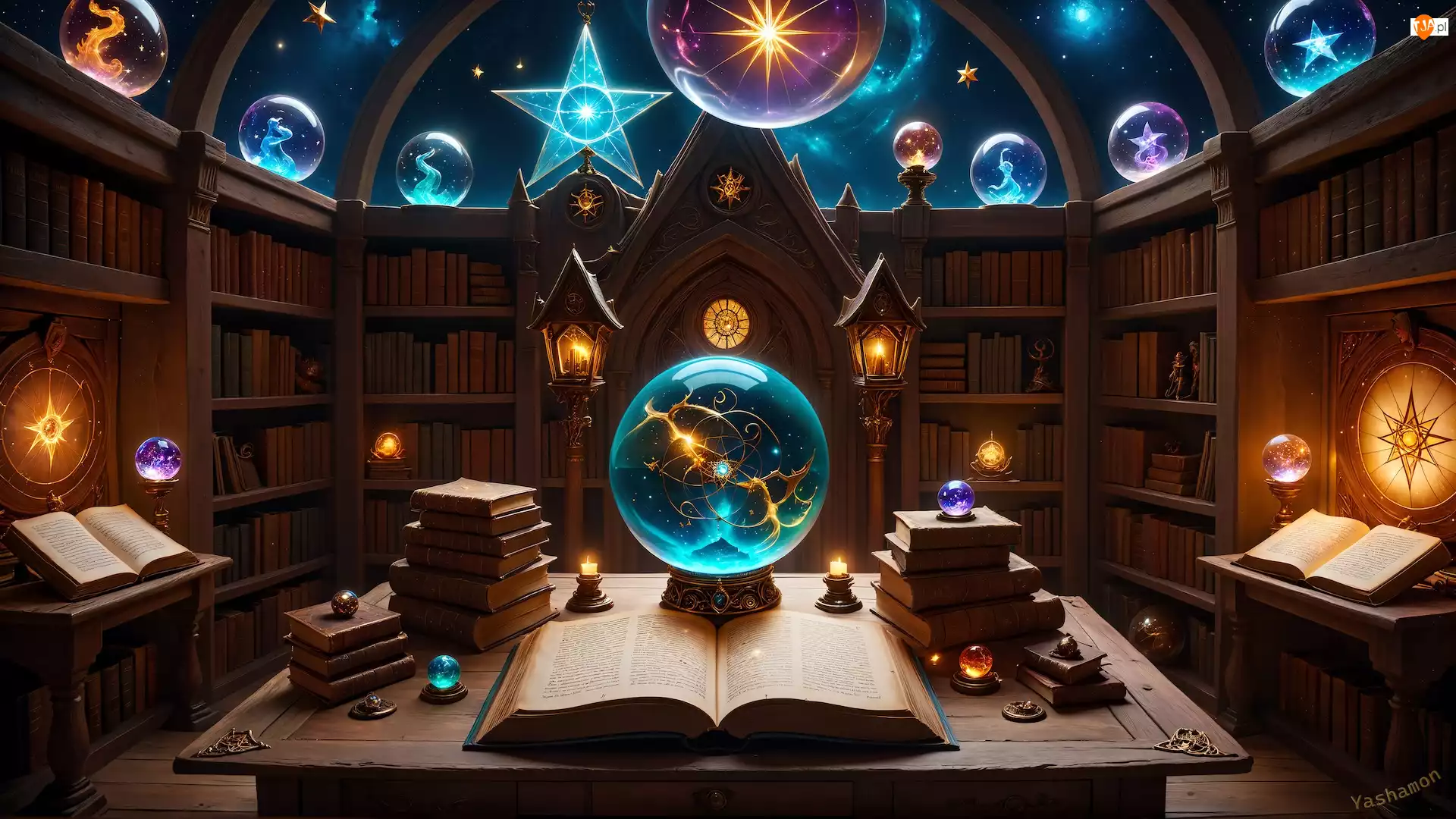 Książki, Szklane, Biblioteka, Grafika, Kule