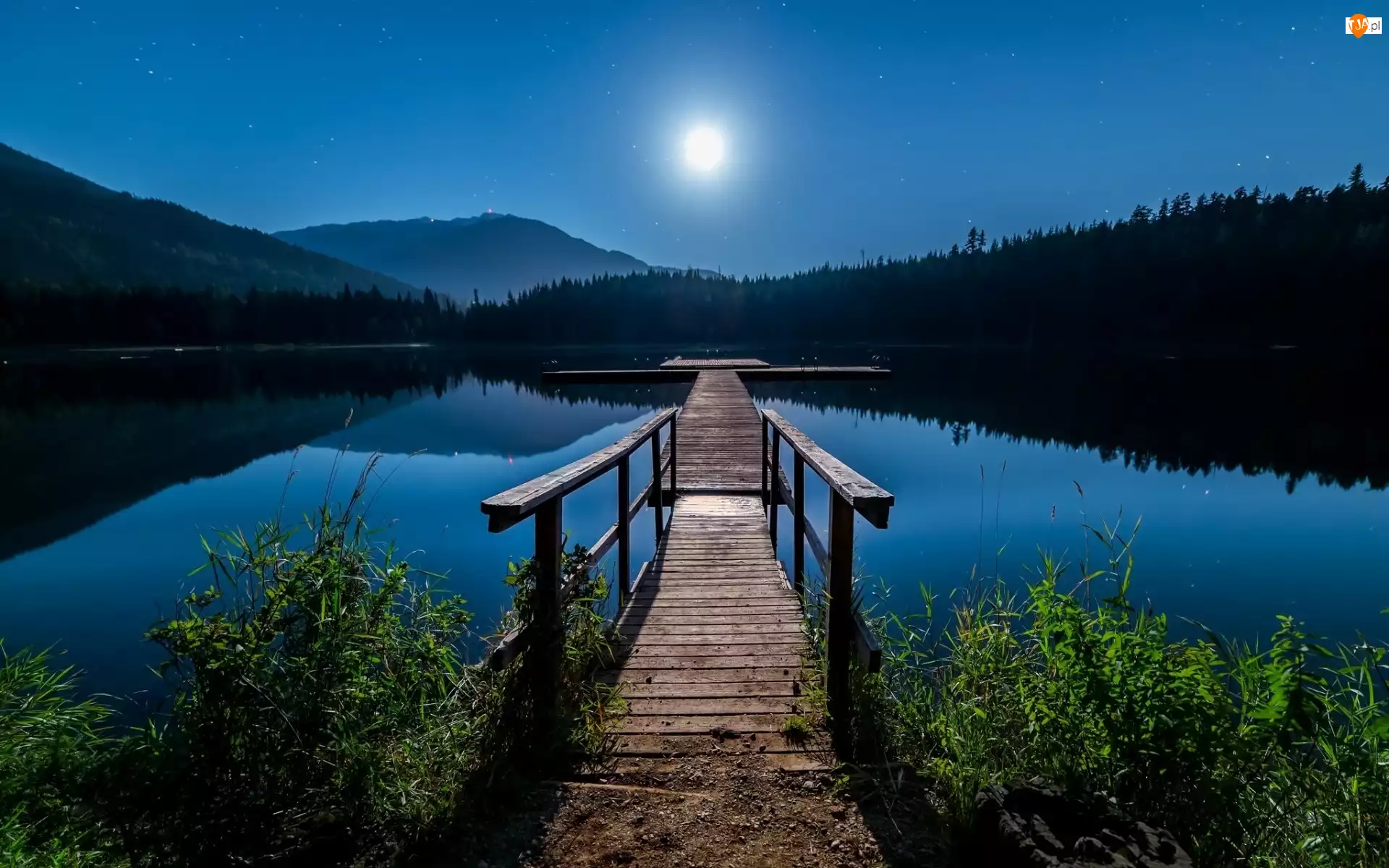 Kanada, Lost Lake, Kolumbia Brytyjska, Księżyc, Whistler, Góry, Pomost, Jezioro, Noc