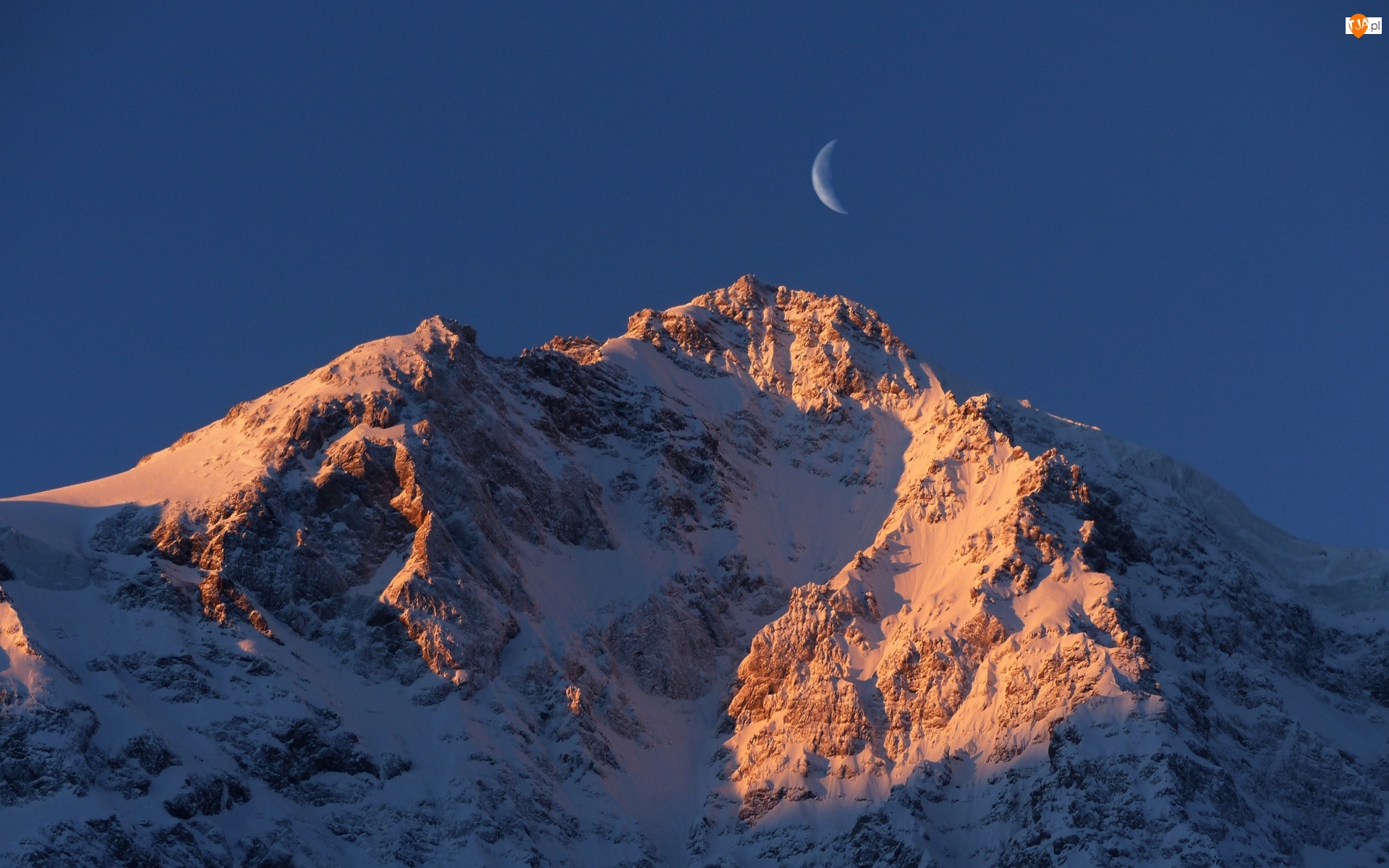 Księżyc, Zachód, Góry, Słońca, Śnieg