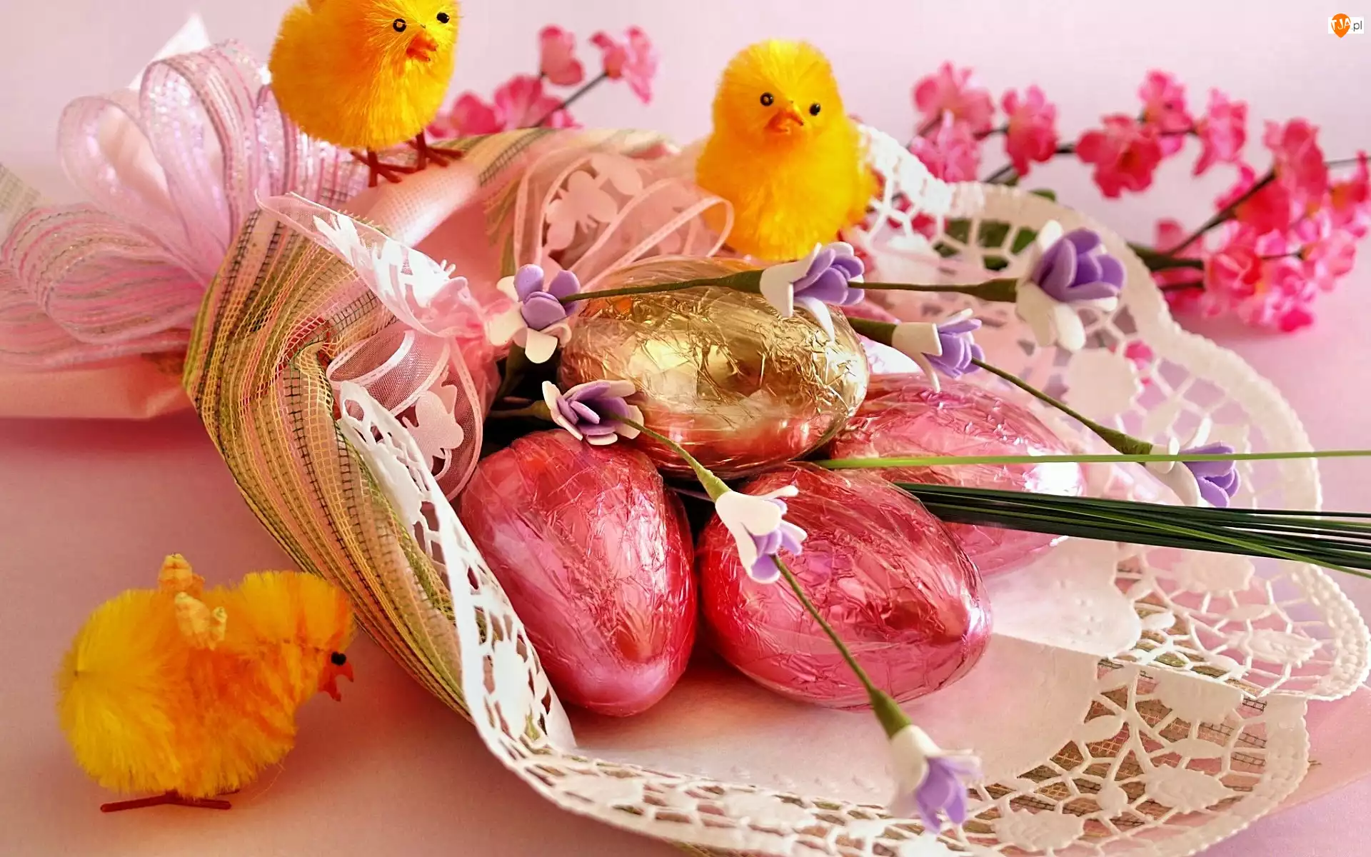 Kurczaczki, Wielkanoc, Jajka, Kwiatki