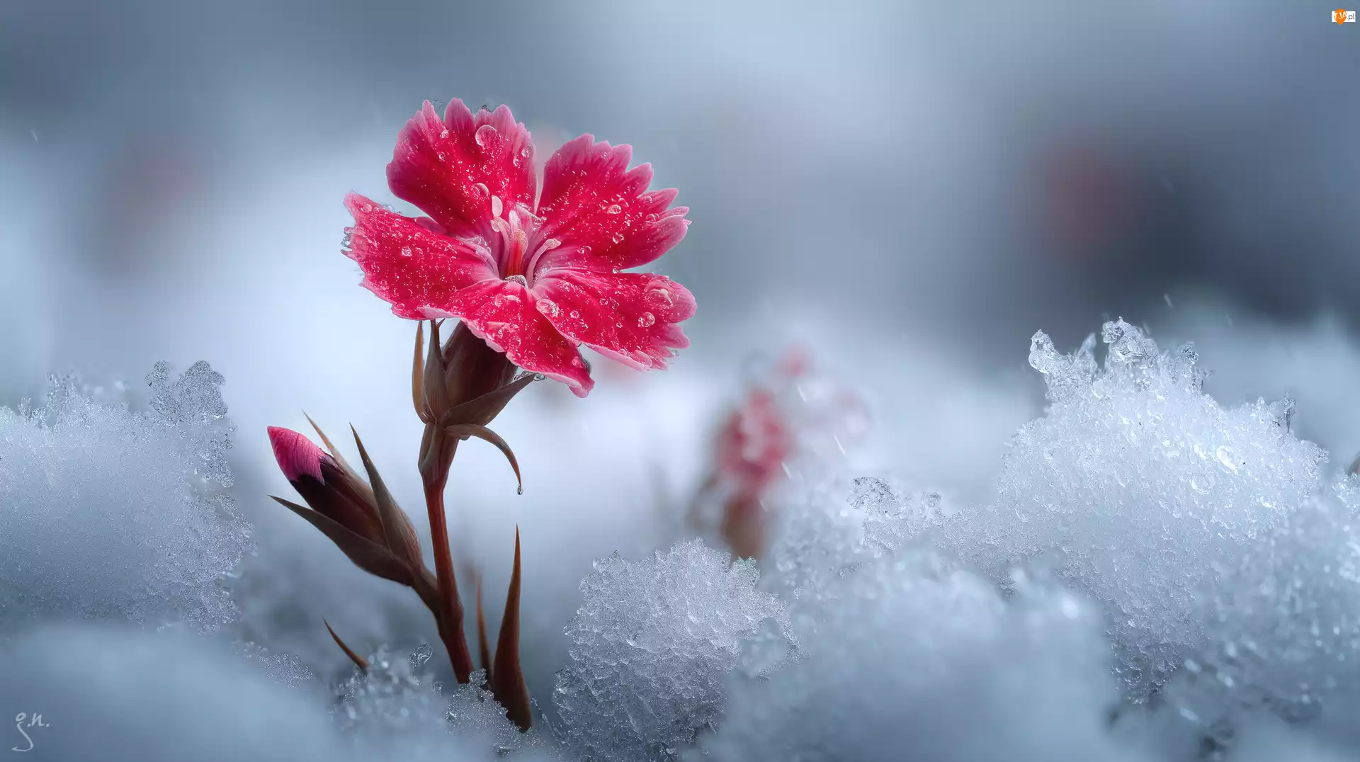 Kwiat, Grafika AI, Goździk, Czerwony, Śnieg