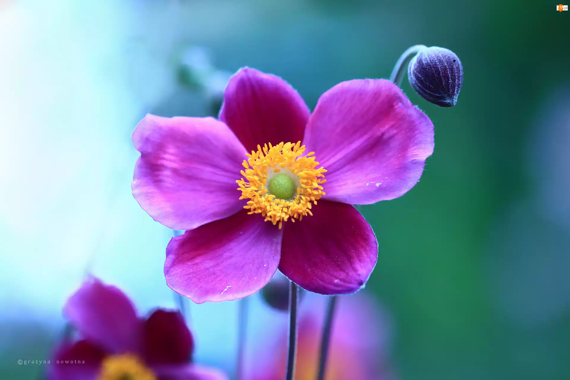 Kwiat, Zawilec Japoński, Fioletowy