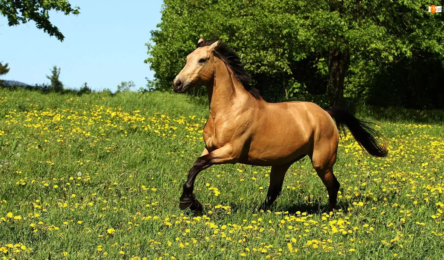 Kwiatki, Koń, Łąka, Bieg, Żółte