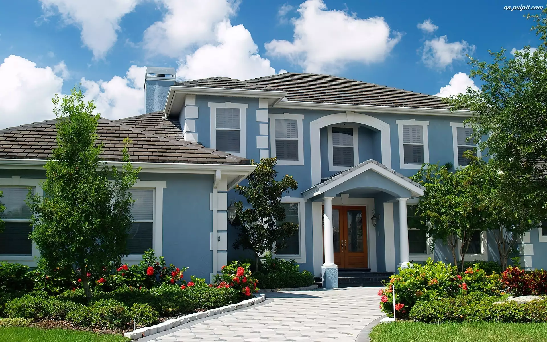 Kwiatowy, Luksusowy, Chodnik, Dom, Ogród